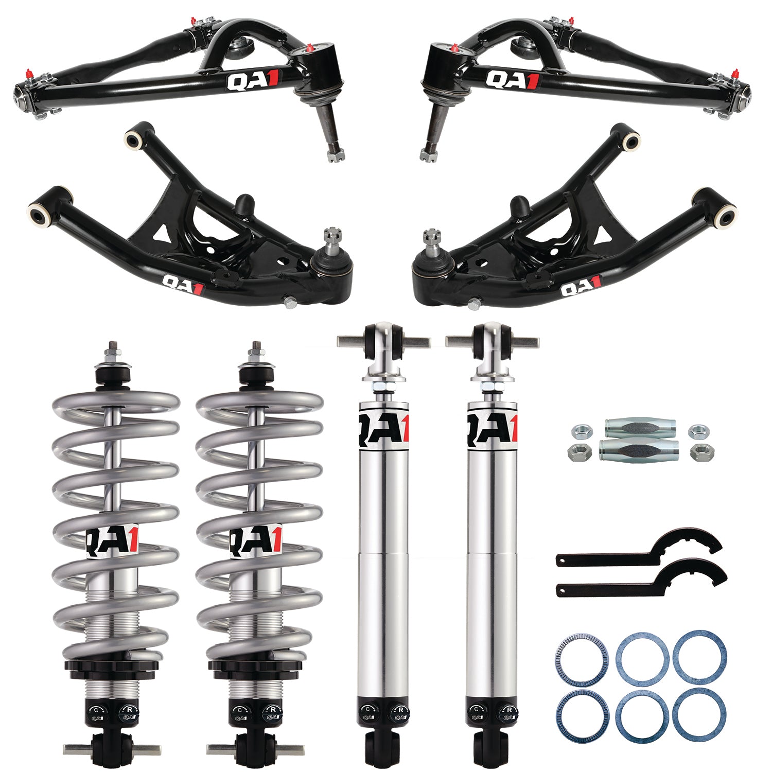 Looking for a better launch, straight line stability and consistent performance for your 1968-1974 GM X-Body vehicle? Turn to QA1's drag racing suspension kits for a full-vehicle upgrade that fits your needs. Available in three different levels of performance, these drag racing kits offers easy, bolt-in installation and seamlessly works with whatever OE component each piece attaches to. Don't want to make the investment right away? No problem. You can build your car in stages, using our parts list as a road map to get to the level of performance you want and have the peace of mind knowing you won't have compatibility issues. These kits include spring rate carefully selected to maximize performance. They are geared towards average weight small block and LS powered vehicles with stock trim. Our level two and three drag racing kits offer stiffer springs to maximize stored energy for weight transfer. What if the vehicle has been heavily modified from its original weight? No problem. These kits are also offered without shocks to give you the flexibility to order the shocks with the spring rates you want. Please note when ordering the drag racing kit without shocks, the kit will also not include springs or thrust bearing kits.