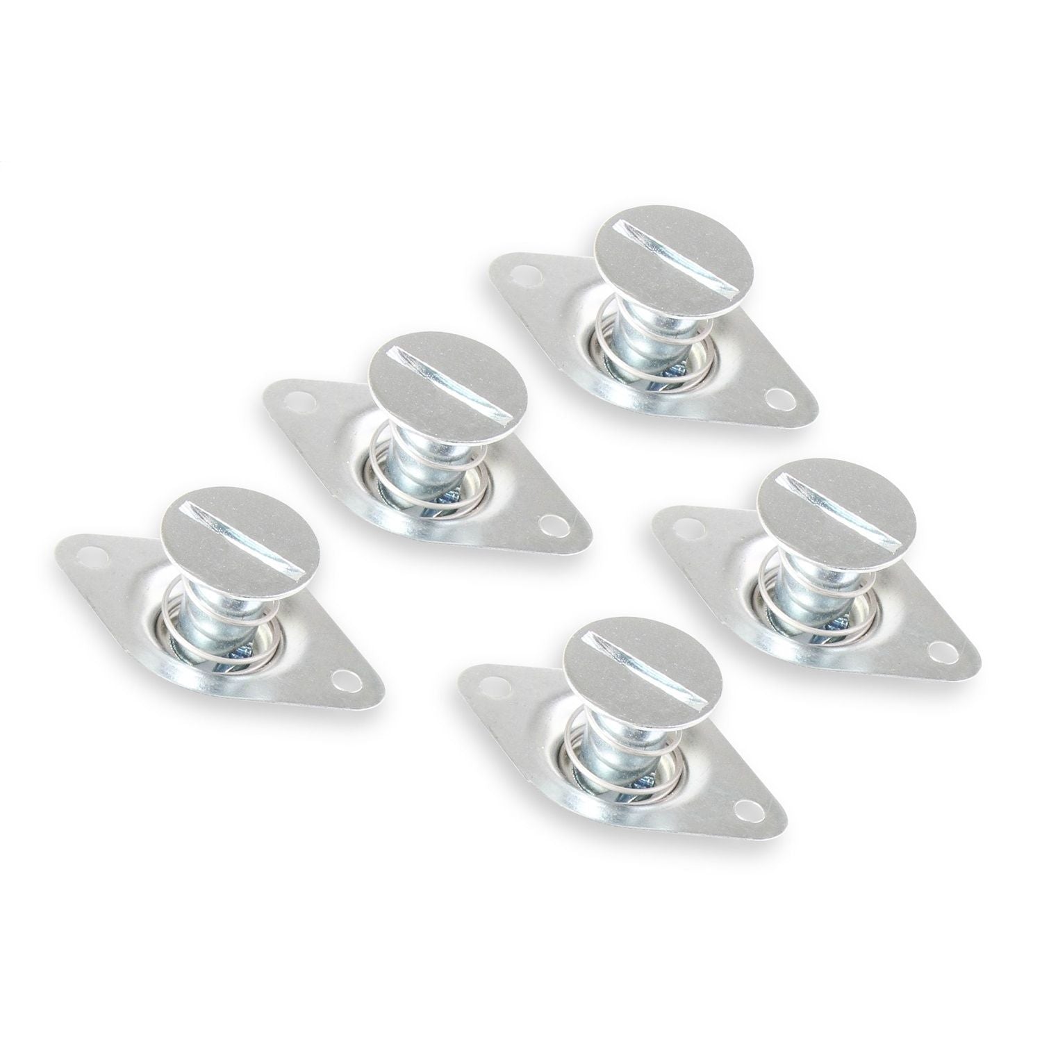Earl's quarter turn fasteners are the ideal way to mount body work or access panels using a simple reliable method that allows quick removal & replacement. The 5/16 in. and 7/16 in. buttons will be available in self-eject, flush-mount, and button head styles. Various sizes and styles of springs and weld plates will also be available to complete the product line. Sold 5 pieces per package. Made in the USA.