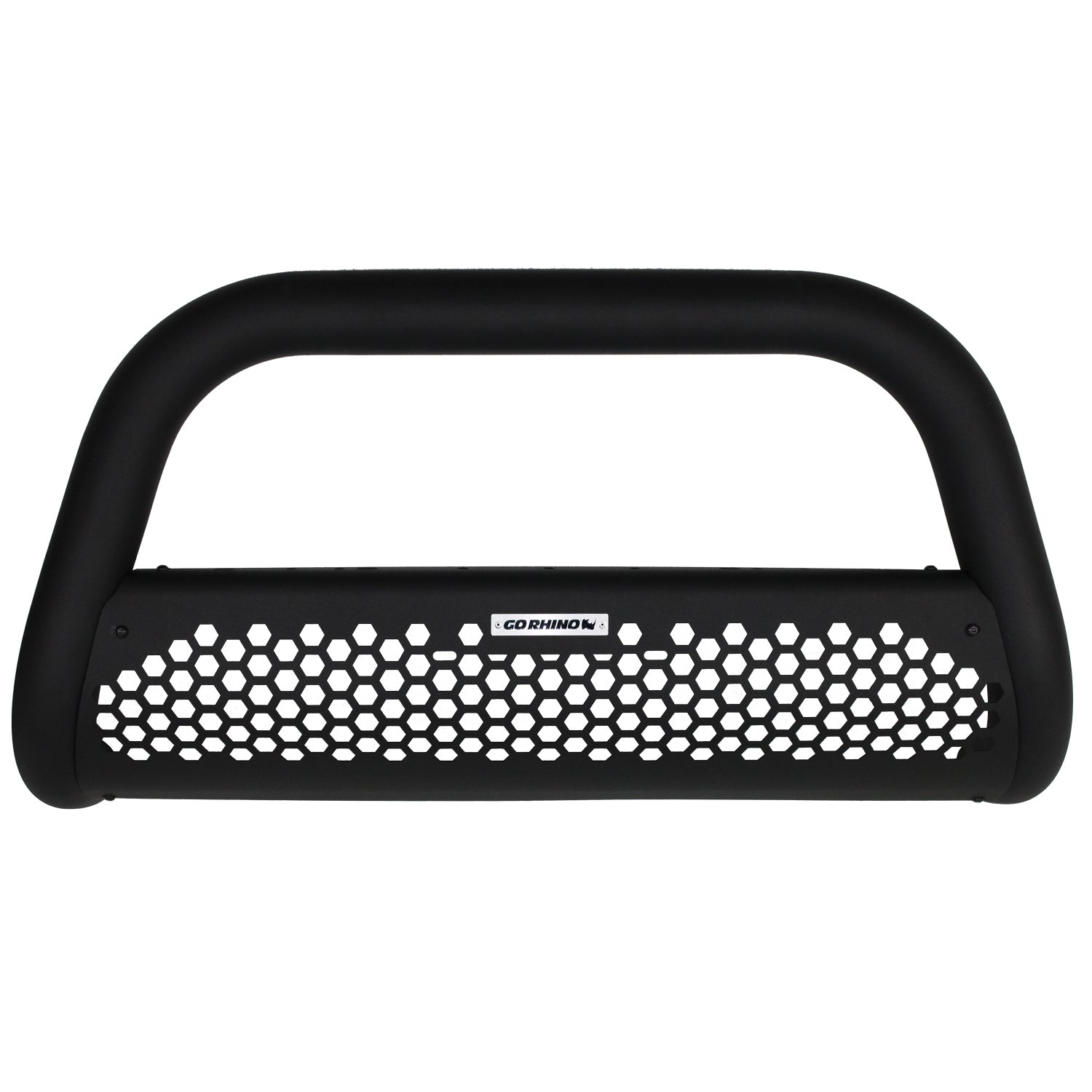 La defensa RC2 de Go Rhino brinda protección frontal para camionetas y SUV con un diseño innovador. El marco de acero tubular de 3" de diámetro cuenta con una placa protectora de acero galvanizado con un elegante patrón de corte hexagonal que realzan el estilo del vehículo.