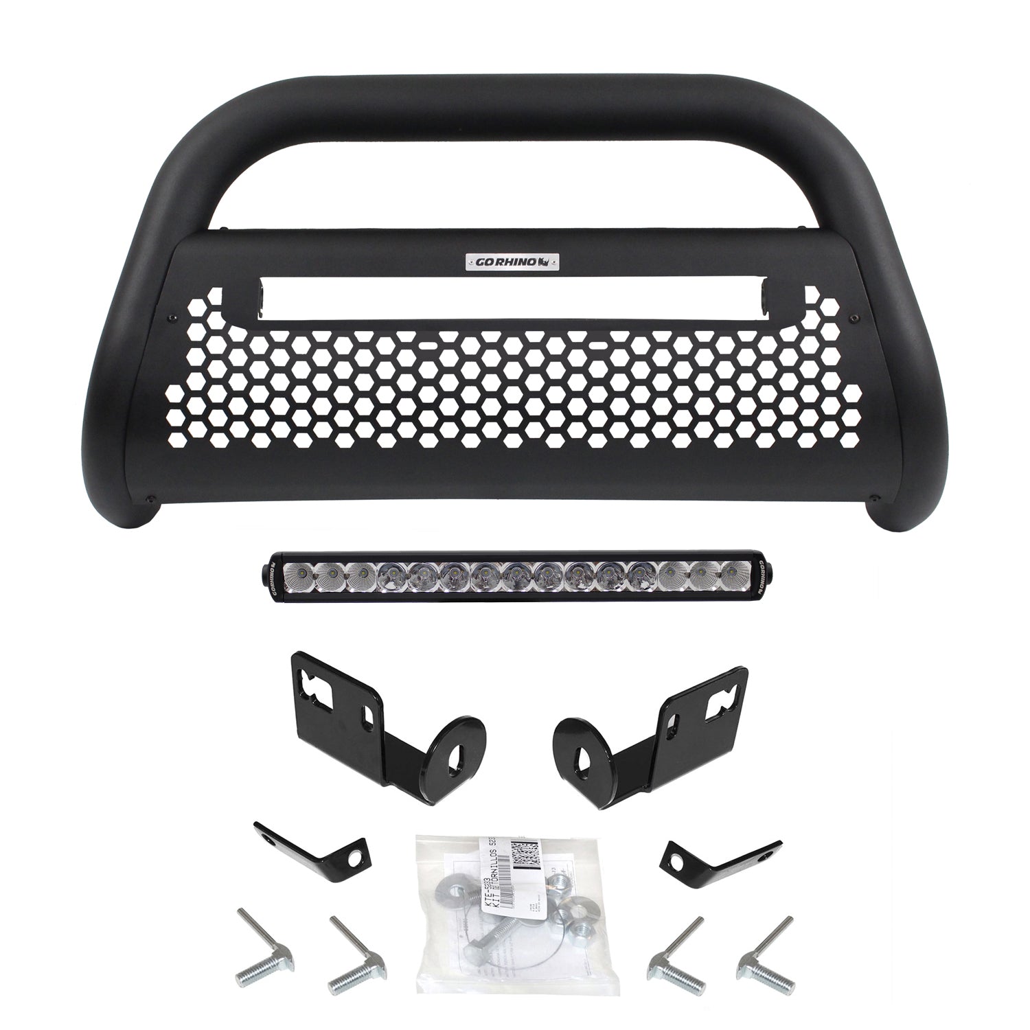 - Incluye: Defensa, Kit de instalación y 1 barra de luz sencilla de 20" Go Rhino