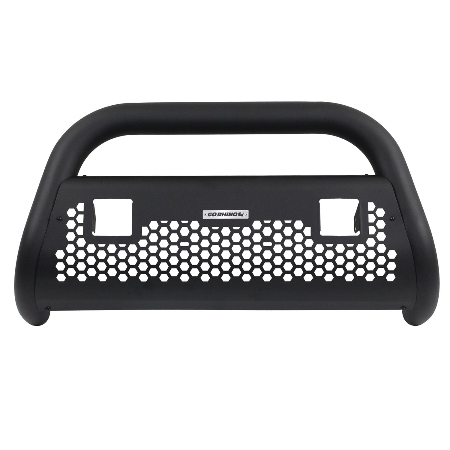 La defensa RC2 LR2 de Go Rhino combina un diseño innovador junto con protección frontal que incorpora un montaje conveniente para dos luces LED. El marco de acero tubular de 3" de diámetro cuenta con una placa protectora de acero galvanizado con un elegante patrón de corte hexagonal que realzan el estilo del vehículo.