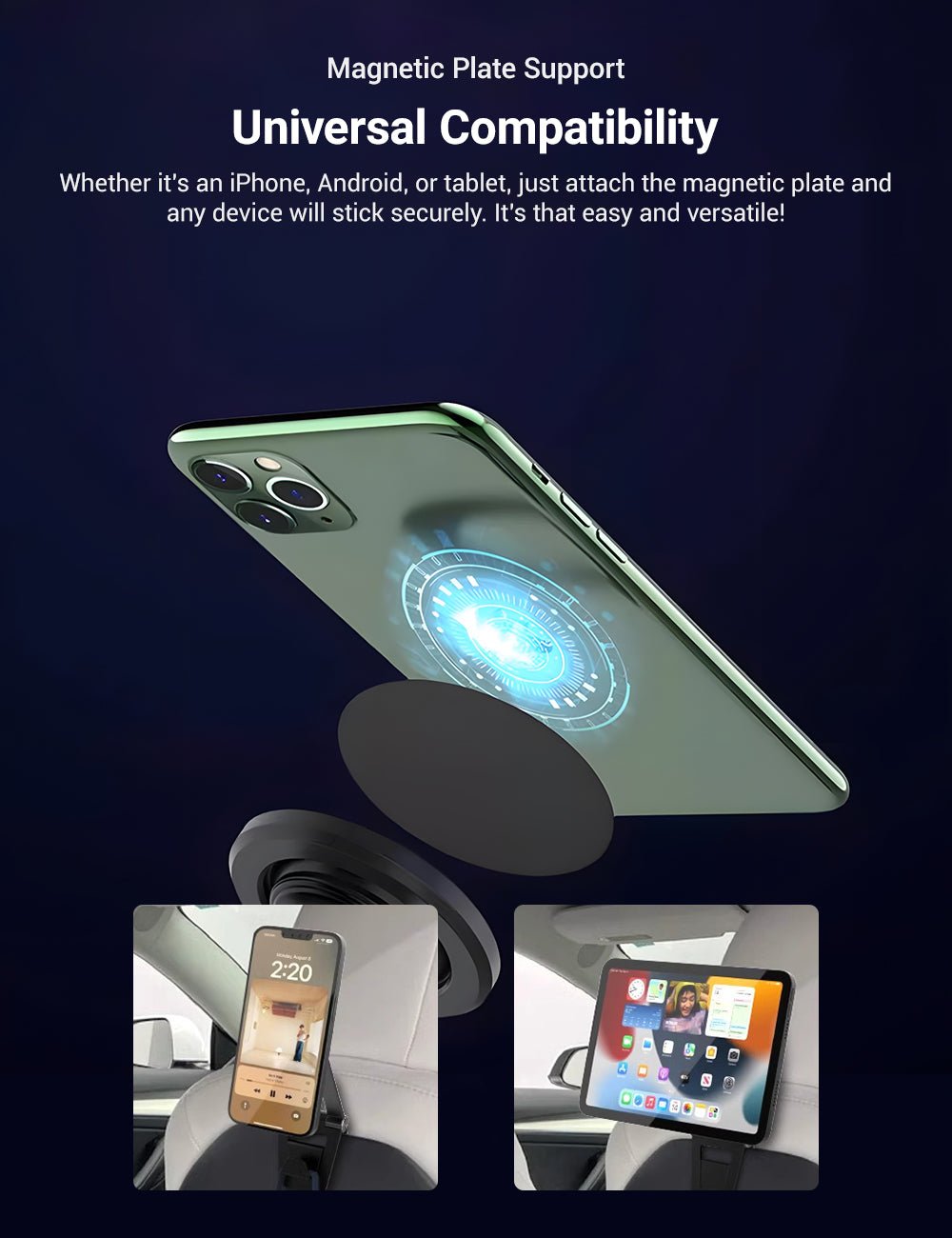 Effortless Rear Seat Entertainment: Elevate your Tesla Model 3 or Model Y's rear seat experience with our innovative Magnetic Car Holder. Keep your passengers entertained during long drives with easy access to devices.