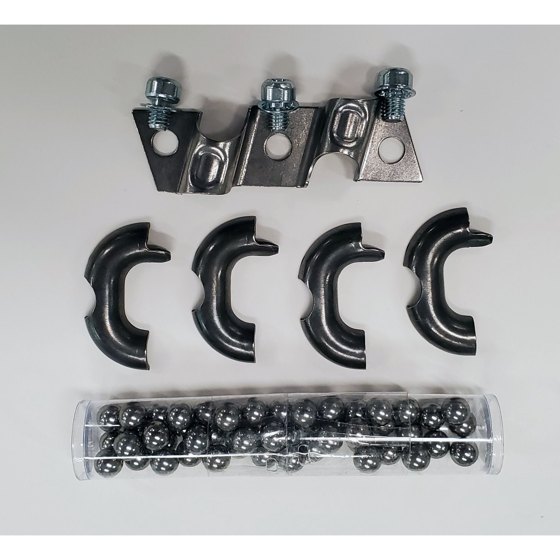 Rebuild kit for Saginaw 525 series manual steering box worm assembly. For 24:1 ratio worm assembly only. Includes 3 #5674113 ball guide clamp screws, 4 #5676172 ball guides, 1 #5676173 ball guide clamp and 50 #7808541 ball bearings. To determine the ratio of your worm assembly please use the following guidelines, 22:1 ratio has one clamp screw, 16:1 ratio has two clamp screws and 24:1 has three clamp screws.