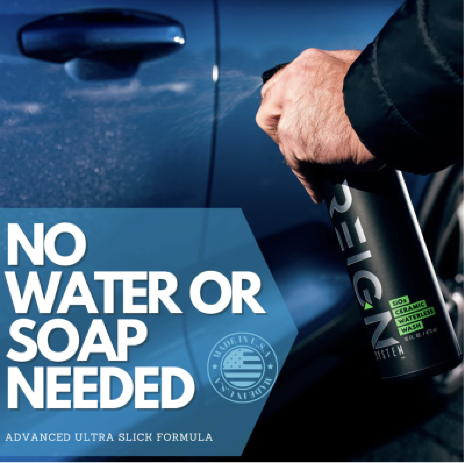 Reign system ceramic waterless wash system is eco-friendly and easy to use. Within minutes you can have your vehicle washed and protected all in one step from paint, glass, and even brake dust without leaving the garage. With a few Microfiber towels, you are back on the road. So what are you waiting for? Pick up a bottle today.