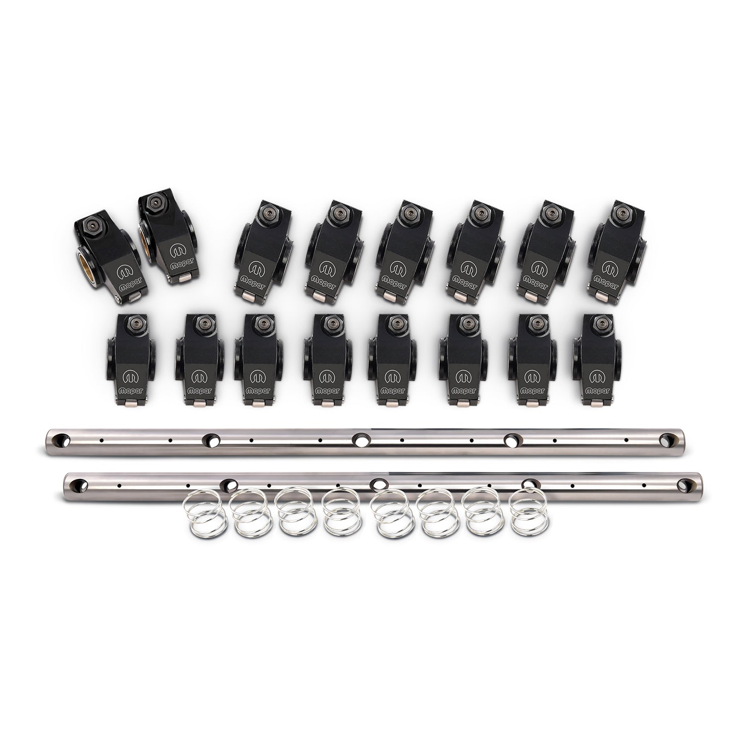 These beautiful new aluminum shaft-mount roller rockers are perfect for your big block (B/RB) engine. The bronze bushings provide a friction free environment for the rocker to pivot on. The system is designed so the oil comes up through the shaft and into the rocker underneath the bushing. Channels and holes in the bushing allow for the oil to lubricate the pivot area. The race-proven roller tip not only unleashes horsepower, it also lengthens valve train component life and reduces wear and tear on valve stem tips. Precision machined to insure consistency and ratio accuracy. The adjustable push rod tips allow for precise lash adjusting. 16 aluminum roller rockers, hardened shafts, and spacer hardware included. Use your stock bolts to attach the shaft to your cylinder head.