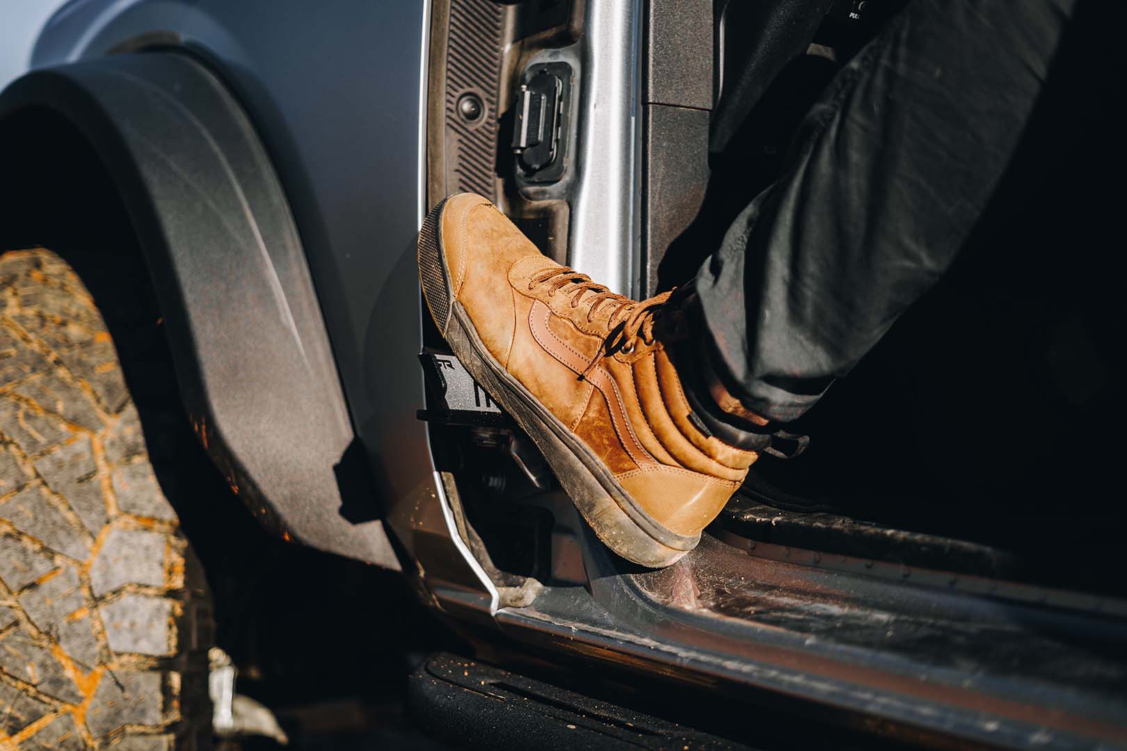 Modern Aggressive RTR Styling. With a unique design that plays off the factory surfaces of your Bronco, you will find the RTR Bronco Foot Rests stand out from anything else on the market. No fake bolts here, only modern, aggressive RTR styling. High-Quality Construction. The RTR Bronco Foot Rests are designed and manufactured with consideration of OEM fitment.These foot rests are designed to have a tight, quality fit on your Bronco door hinges. These foot rests can rotate in for added side clearance when needed. The RTR Bronco Foot Rests have a durable, powder-coated finish and grip tape to ensure foot doesn't slip. Simple, Straight Forward Installation. The RTR Bronco Foot Rests are designed using OE Manufacture CAD data and is installed with high-quality hardware and mounting points. There is no cutting or modification required for a clean, straight forward installation. Made in the USA. RTR Bronco Foot Rests are proudly designed and manufactured in the United States.