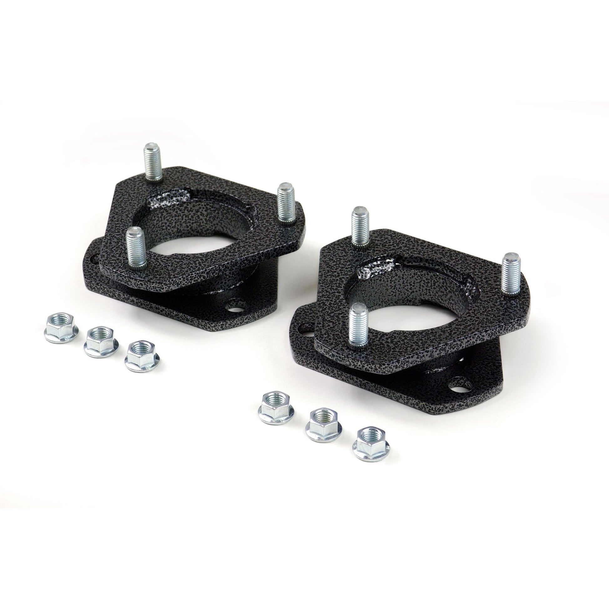 2005-2019 Toyota Tacoma 6-LUG 2WD .Front 2.25'' Leveling Kit. PN 7-103Rugged Off Road? offers the highest quality leveling kit to lift the front of your 2005-2019Toyota 2WD Tacoma6-lug Prerunnerthe right way! Rugged Off Road's new 2.25'' strut suspension extension leveling kit will allow you to have a level stance and increased wheel and tire clearance. Our new super strong at a super value 2.25'' Leveling Kit is designed specifically for this model Tacoma! This leveling kit will lift the front of your 2005-2019 Toyota Tacoma 6-lug enough to clear 33'' tall tires. For use on 2WD Tacoma trucks. 4WD Tacomatrucks will need to use Rugged Off Road? 7-106 with differential drop brackets. The Rugged Off Road? 7-103 2.25'' Toyota Tacoma 6-lug leveling kit is the best constructed, best value leveling kit on the market. Our high-quality hammertone powdercoated laser cut steel strut suspension spacers offer a full 2.25'' of front lift and the ability to install up to larger size wheels and tires you want! Get the job done safely without having to break the bank. No cutting. No modifying. Easy Installation in less than two hours!Note: not for use on TRD Pro model trucks.
