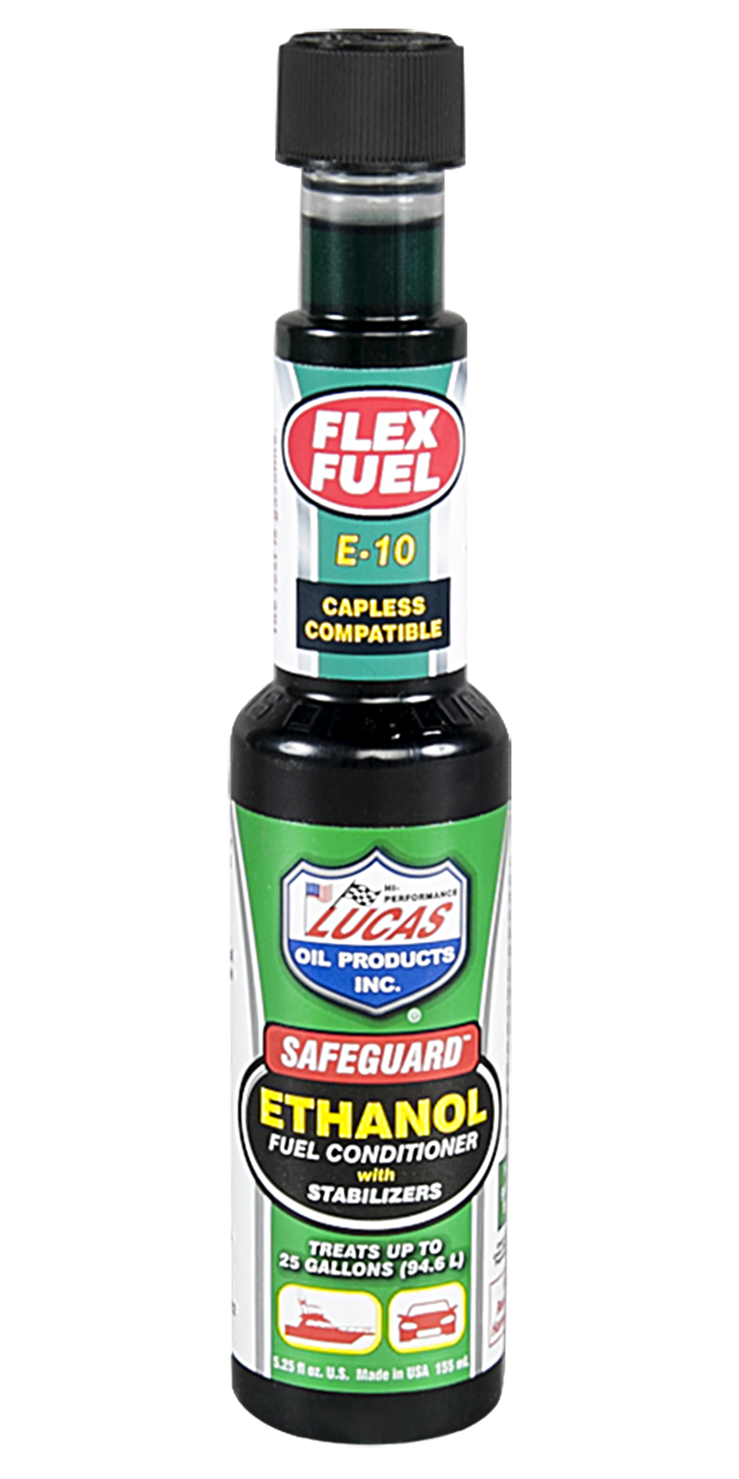 Lucas Safeguard?Ethanol Fuel Conditioner and Stabilizer was developed to specifically address issues associated with using ethanol based fuels. This applies to E-10, E-15, E-85, pure ethanol and any mixtures in between, including gasoline. Our product is completely soluble in all ethanol fuels and will not harm filters. Our product contains effective additives to prevent rust and corrosion associated with the use of ethanol fuels. Safeguard? cleans injectors, valve seats, combustion chambers and other critical fuel components. It contains effective oxidation inhibitors to stabilize fuel and prevent varnish and gum formation in ethanol and gasoline. It works to combat deposits and protects your engine oil lubricants from the harmful effects of alcohol combustion. Safeguard? treats up to 80 gallons (302.8 liters) of ethanol fuel. One ounce treats five gallons of ethanol fuel. Recommended for use in automobiles and marine applications. Our new 5.25 oz bottle treats up to 25 gallons (94.6 liters) of ethanol fuel. NOT RECOMMENDED FOR DIESEL APPLICATIONS.