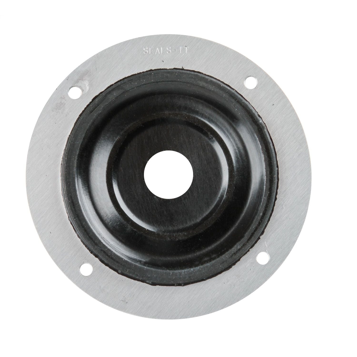 Seals-It has designed this unique seal that will stretch to allow the fitting to pass, yet will grip the hose, not allowing fumes or debris to pass through. Made from a fire retardant rubber bonded to an anodized aluminum bezel.