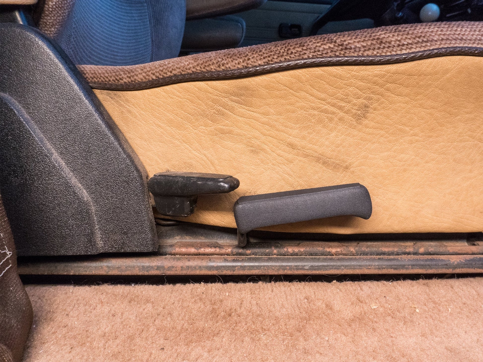 You know that pointy metal rod next to your seat, that you pull to slide forward and back? Stop risking ripping your pants, and cover that handle with a new knob handle.
