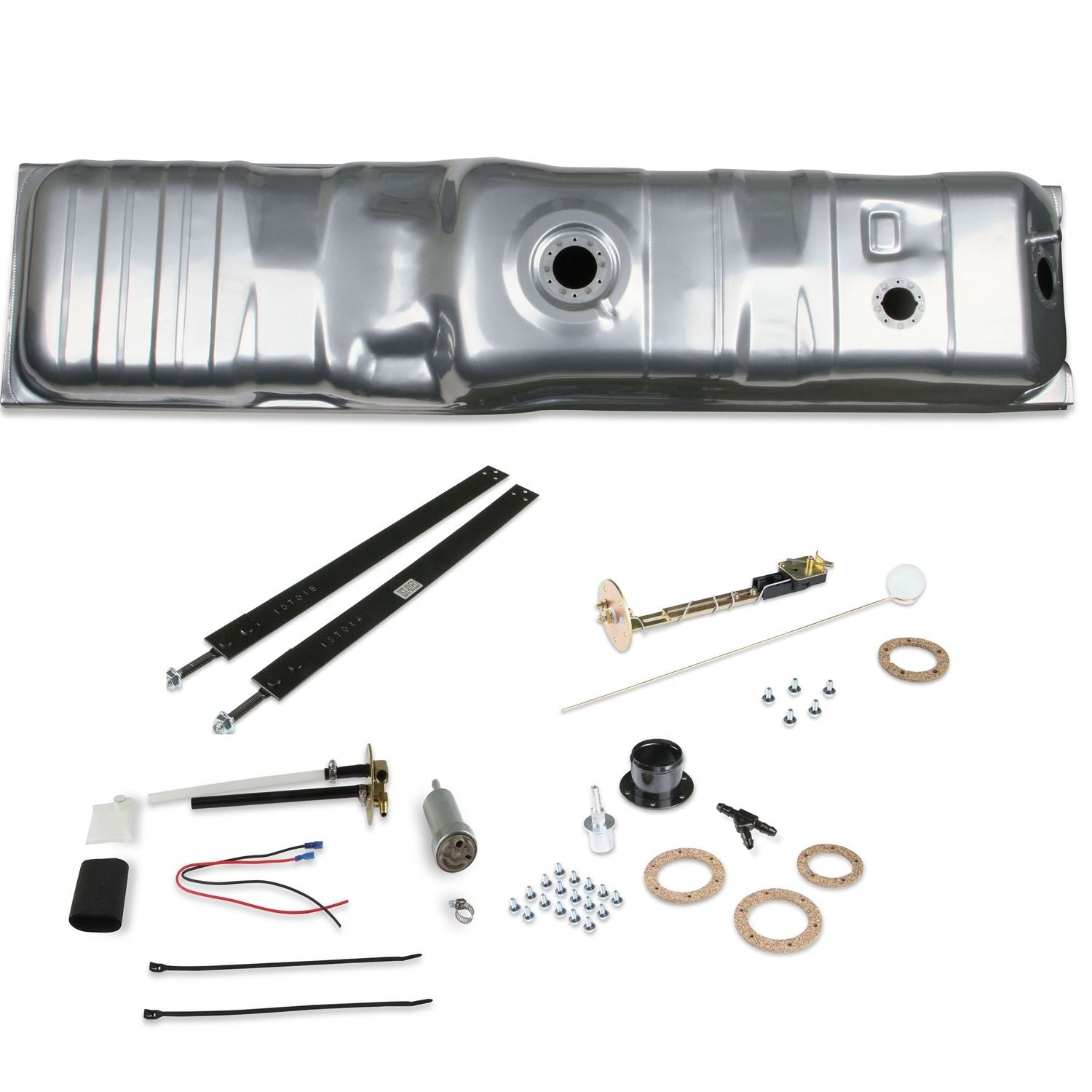 Holley and Sniper will help you to complete your EFI swap with our new EFI Conversion Fuel Tanks. Each tank is a direct fit for your application-no modifications necessary. The kit includes the tank, a 255 lph fuel pump, internal baffling, a fuel level sender, and the filler neck. The tank is powder coated for corrosion resistance and great looks. These tank kits are a complete solution for your EFI project!