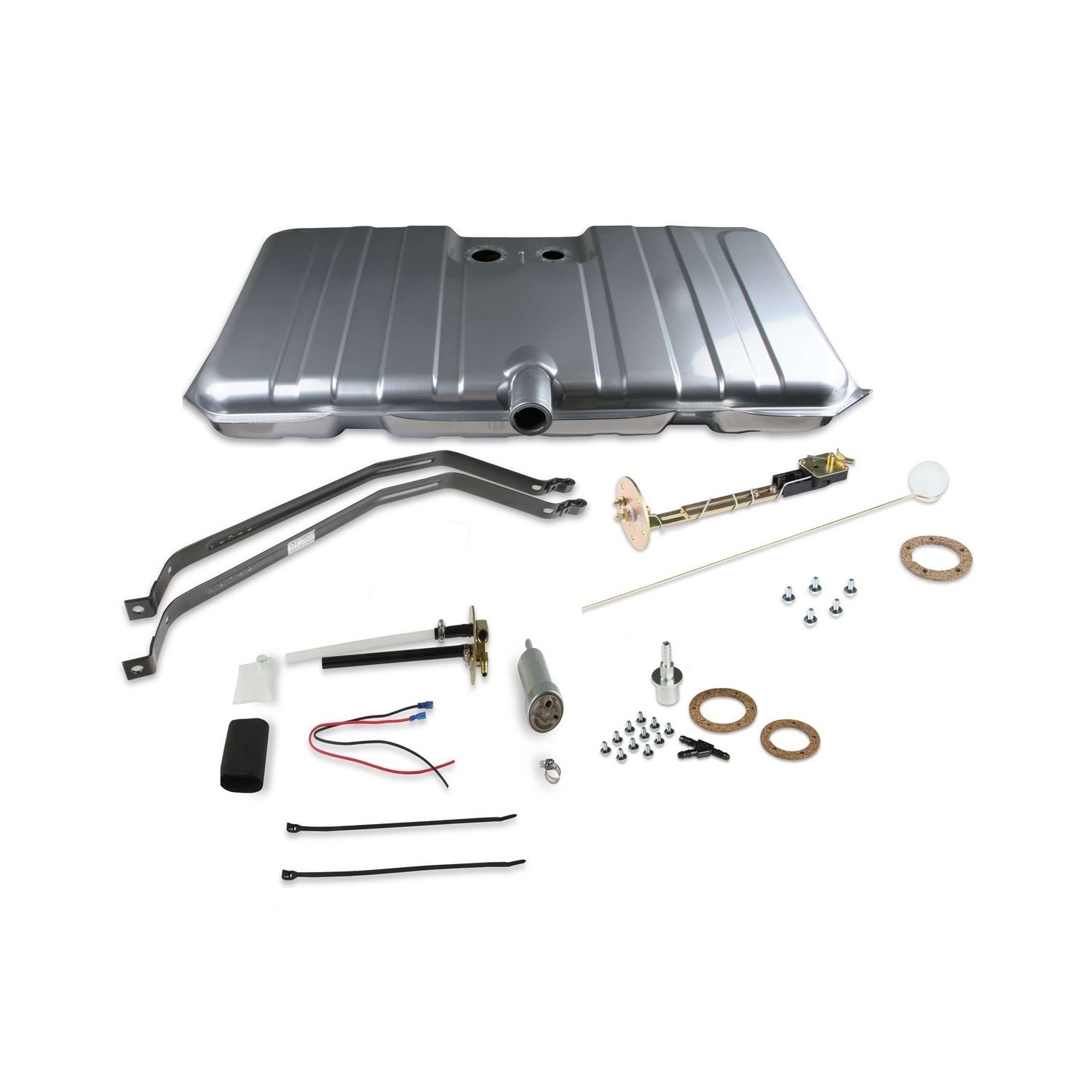 Holley and Sniper will help you to complete your EFI swap with our new EFI Conversion Fuel Tanks. Each tank is a direct fit for your application-no modifications necessary. The kit includes the tank, a 255 lph fuel pump, internal baffling, a fuel level sender, and the filler neck. The tank is powder coated for corrosion resistance and great looks. These tank kits are a complete solution for your EFI project! Supports up to 750 EFI (@ 60 PSI at 13.5 Volts / 10.4 AMP Draw). For a better seal use Permatex Indian Head Gasket Shellac Compound or Aviation Form-A-Gasket sealant on the gasket and screws.