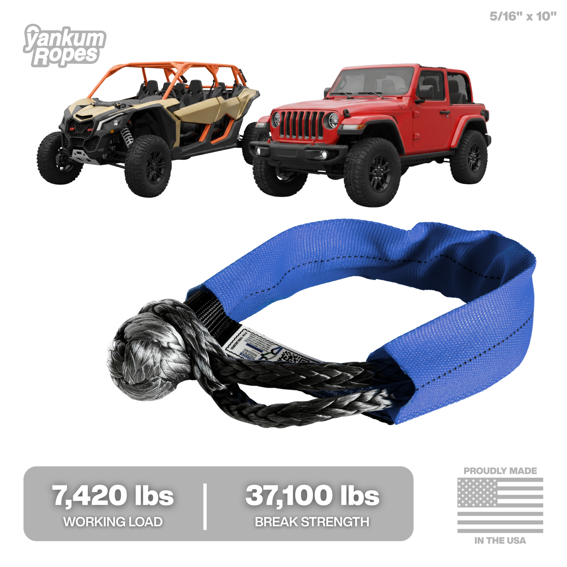 Typically, in recovery, there's a metal D-Shackle (aka Clevis, Bow Shackle, thingumajig, tow point or whatever you call it in your local dialect) that you can attach your recovery rope to. Those suckers are heavy and are usually multiple pieces that get dropped in the mud. Who likes muddy metal parts when you're in need of Recovery?