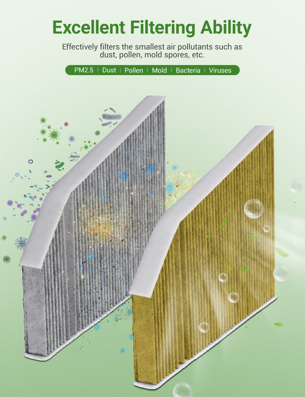 - Activated Carbon Odor Control: Specialized carbon layer absorbs and neutralizes unpleasant odors from traffic exhaust, smoke, and environmental pollutants.