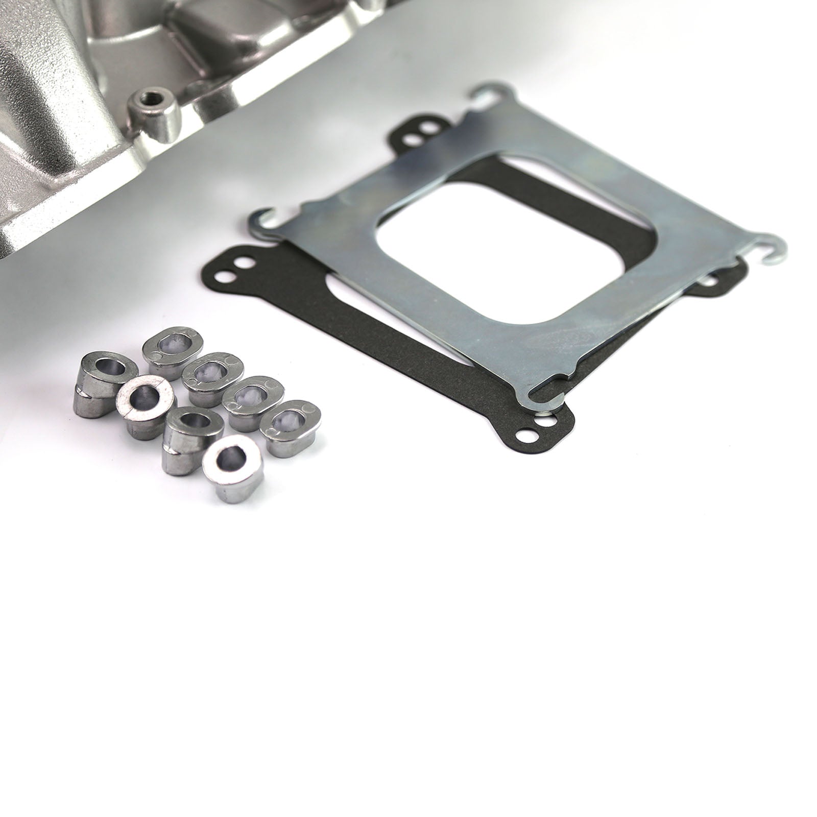 The Speedmaster LowRise Manifolds are our lowest profile manifold and is also the only one that is street legal on pollution controlled vehicles. It is set up to accept a spread bore carb but comes with an adapter plate that permits the use of square bore carbs. To remain street legal with a square bore carb, you must use one that is also approved as street legal for your application. This Speedmaster LowRise manifold is designed to fit engine swaps using the 1996 and later Vortec (Gen 1+) cast iron heads or the Edelbrock E-Tec aluminum heads. These cylinder heads are very popular in street rods, engine swaps, or the industrial market. This manifold can be used on any Chevy V-8 engine utilizing the late Vortec head. This manifold has provision for external water bypass.