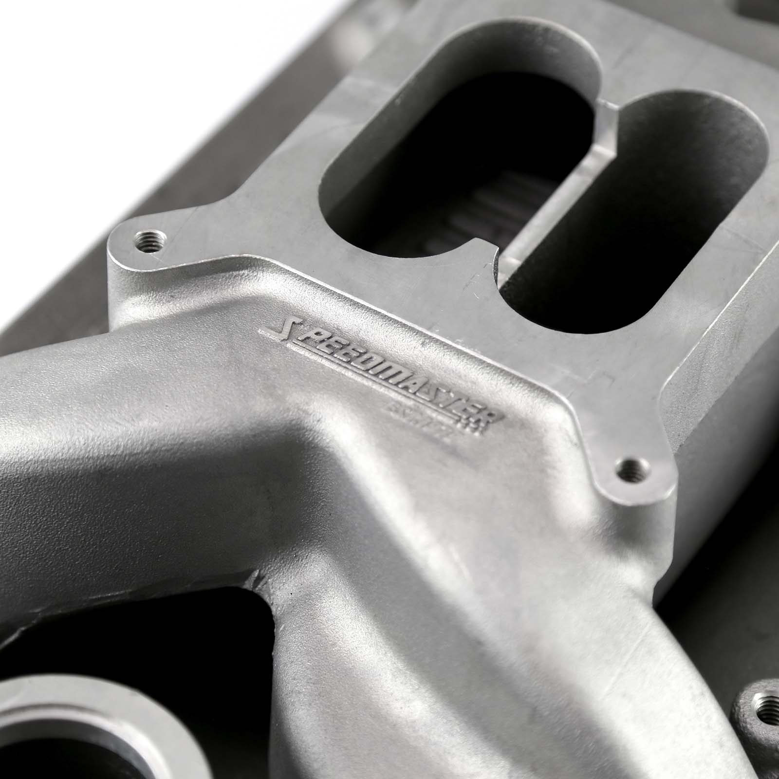 The Speedmaster MidRise Air design features the identical plenum and runner design as the normal MidRise. The main difference is that there is an open area under the plenum chamber. This feature is sometimes called an air gap design. The air flowing under the plenum provides a cooler charge for the incoming air with less heat transfer from the engine. This cooler air charge provides additional power and torque. This Speedmaster MidRise Air for the Vortec features wider design to accommodate the Vortec design heads and also features the Vortec port configuration. The manifold also has a square bore carb pad to utilize the standard Holley, Carter and Edelbrock carburetors. This manifold is intended for use on up through -95 blocks using the 1996 and later Vortec (Gen 1+) heads or Edelbrock E-Tec heads. It can also be used on -96 and later Vortec engines with some minor modifications. The modification is not to the manifold itself.
