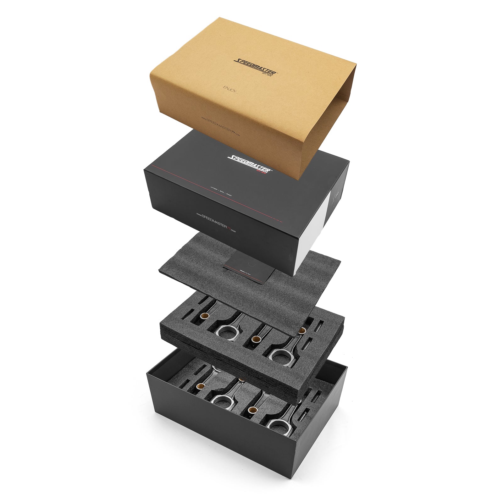 These Speedmsater I-beam connecting rods incorporate all of the best features possible for an I-beam rod, including some strength adders found in H-beam designs. Speedmaster I-beam connecting rods are profiled with clearance for long stroke applications. These connecting rods feature a one-rib cap design for added strength and bearing support, polished beams to eliminate stress risers. Speedmaster I-beam Street connecting rods are manufactured from high quality Forged 5140 steel. The rods are x-rayed and ultrasonically tested with all surfaces shot peened and stress relieved.ARP connecting rod bolts are precision CNC-machined to exacting specifications and designed for optimum reliability. They are heat-treated and threads are rolled to provide up to ten times more fatigue strength. This makes them far superior to standard OEM fasteners in terms of durability, and fully capable of handling the extra stress of high-combustion engines.