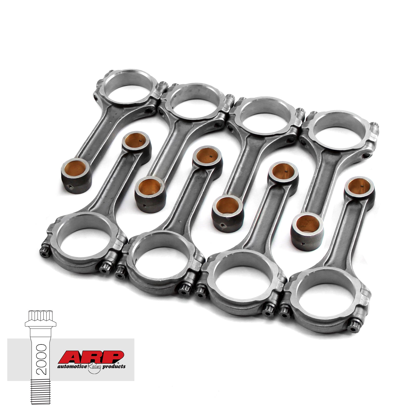 These Speedmsater I-beam connecting rods incorporate all of the best features possible for an I-beam rod, including some strength adders found in H-beam designs. Speedmaster I-beam connecting rods are profiled with clearance for long stroke applications. These connecting rods feature a one-rib cap design for added strength and bearing support, polished beams to eliminate stress risers. Speedmaster I-beam Street connecting rods are manufactured from high quality Forged 5140 steel. The rods are x-rayed and ultrasonically tested with all surfaces shot peened and stress relieved.ARP connecting rod bolts are precision CNC-machined to exacting specifications and designed for optimum reliability. They are heat-treated and threads are rolled to provide up to ten times more fatigue strength. This makes them far superior to standard OEM fasteners in terms of durability, and fully capable of handling the extra stress of high-combustion engines.