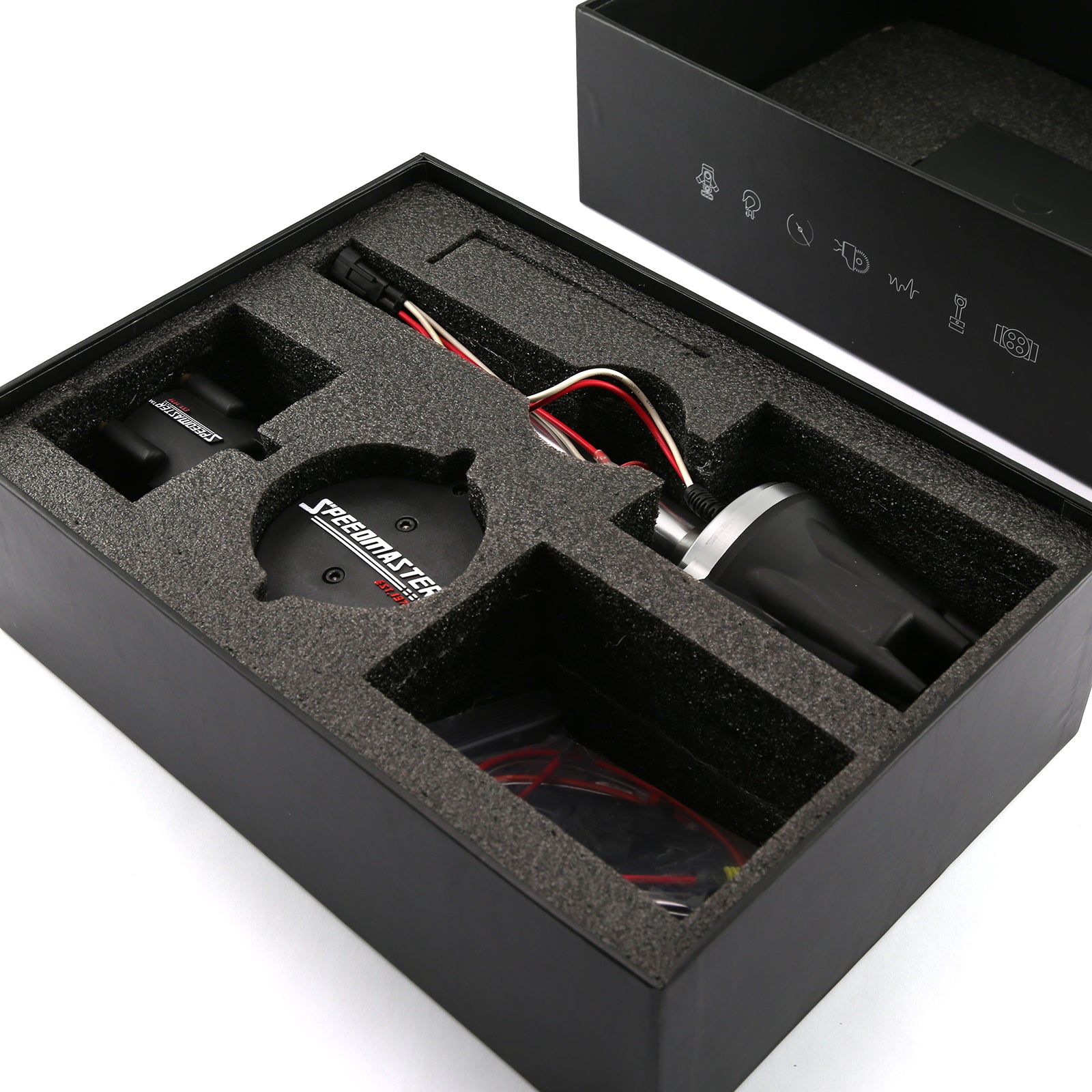 Speedmaster El Rayo distributors are a completely self contained high performance, high output ignition ideal for your hot rod! The "spark plug" type terminals offer secure wire attachment. Under the brass terminals of the cap and rotor is an extremely accurate magnetic pickup that never requires adjustment along with an easy to adjust mechanical advance mechanism. Speedmaster El Rayo ignition system are designed for the enthusiast that is serious about performance but needs the small cap size due to space considerations when installed. They are precision CNC machined from billet 6061-T6 aluminum to exacting tolerances. The "spark plug" type terminals o er secure wire attachment. Under the brass terminals of the cap and rotor is an extremely accurate magnetic pickup that never requires adjustment along with an easy to adjust mechanical advance mechanism. The heavy duty 1/2" steel shaft is guided in a long sintered bushing as well as a sealed ball bearing at the top to precisely locate the reluctor. This combination yields stable timing and spark delivery at any RPM. Speedmaster El Rayo high output coil features a very e cient design where less loss occurs during the transfer of electricity due to the closed core of the coil.