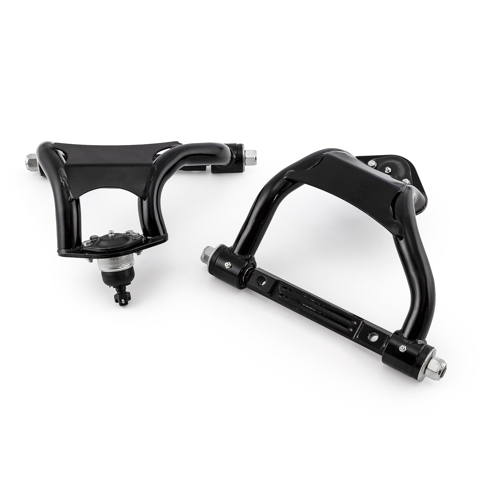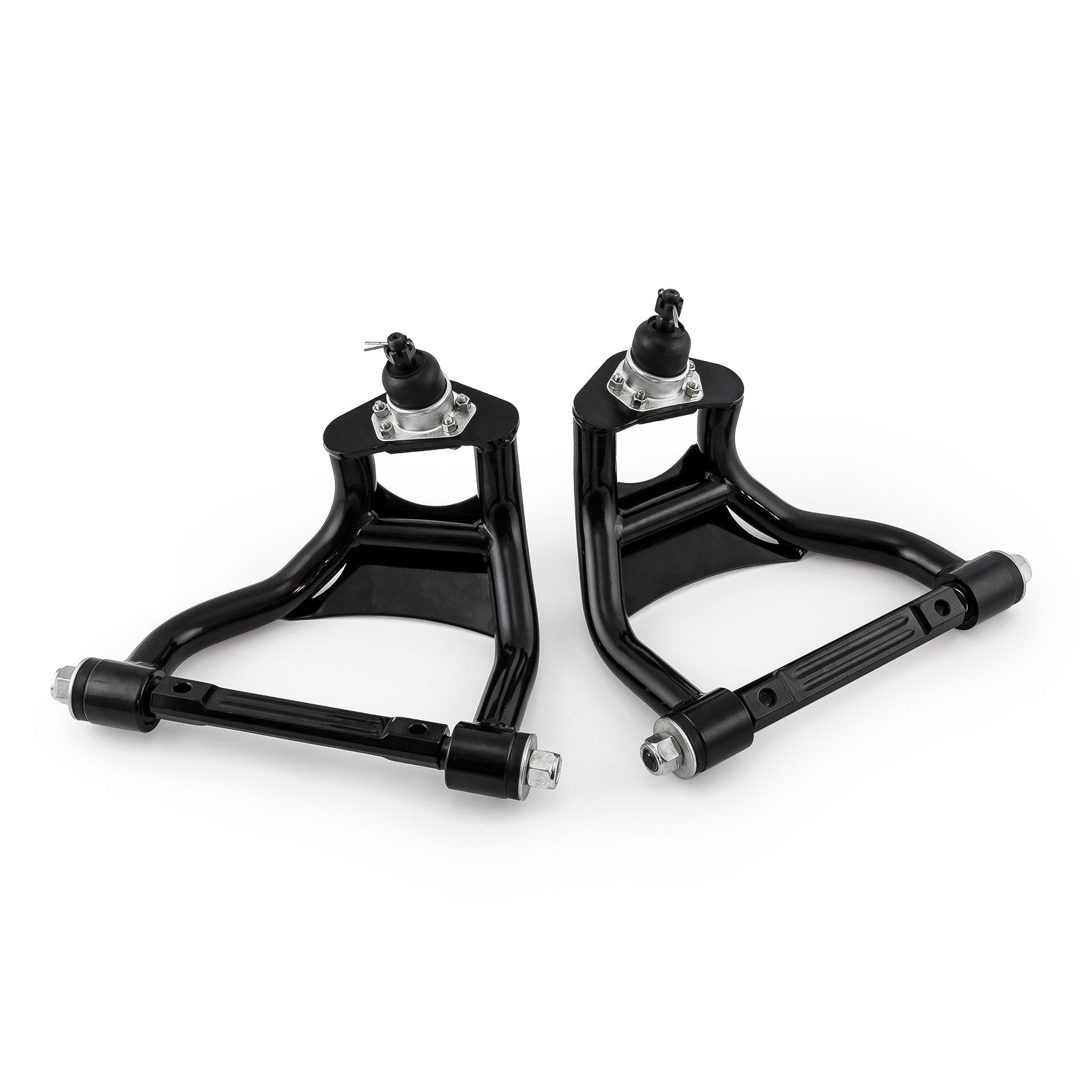 Add a cool new look to your ride and lower your curb weight with PCE control arms. These control arms are manufactured to strict tolerances to employ a great fit and exceptional performance. Features:Stronger than the factory control armImproved suspension geometryProvides additional built in positive caster which improves your handling abilityUrethane bump stops to provide ball joint protection at full dropNo modifications required to install the control armsComplete factory replacementLow drag and self lubricating properties for a bind free operationBushings do not squeak and are high wearingControl arms come powder coated with new hardwareSway arm bushings and mountsHuge tube design for less DeflectionSpecial cam plugs allow for more caster adjustment, giving vehicle more high speed stabilityThese will work with stock/standard coil springs and even coil overs.