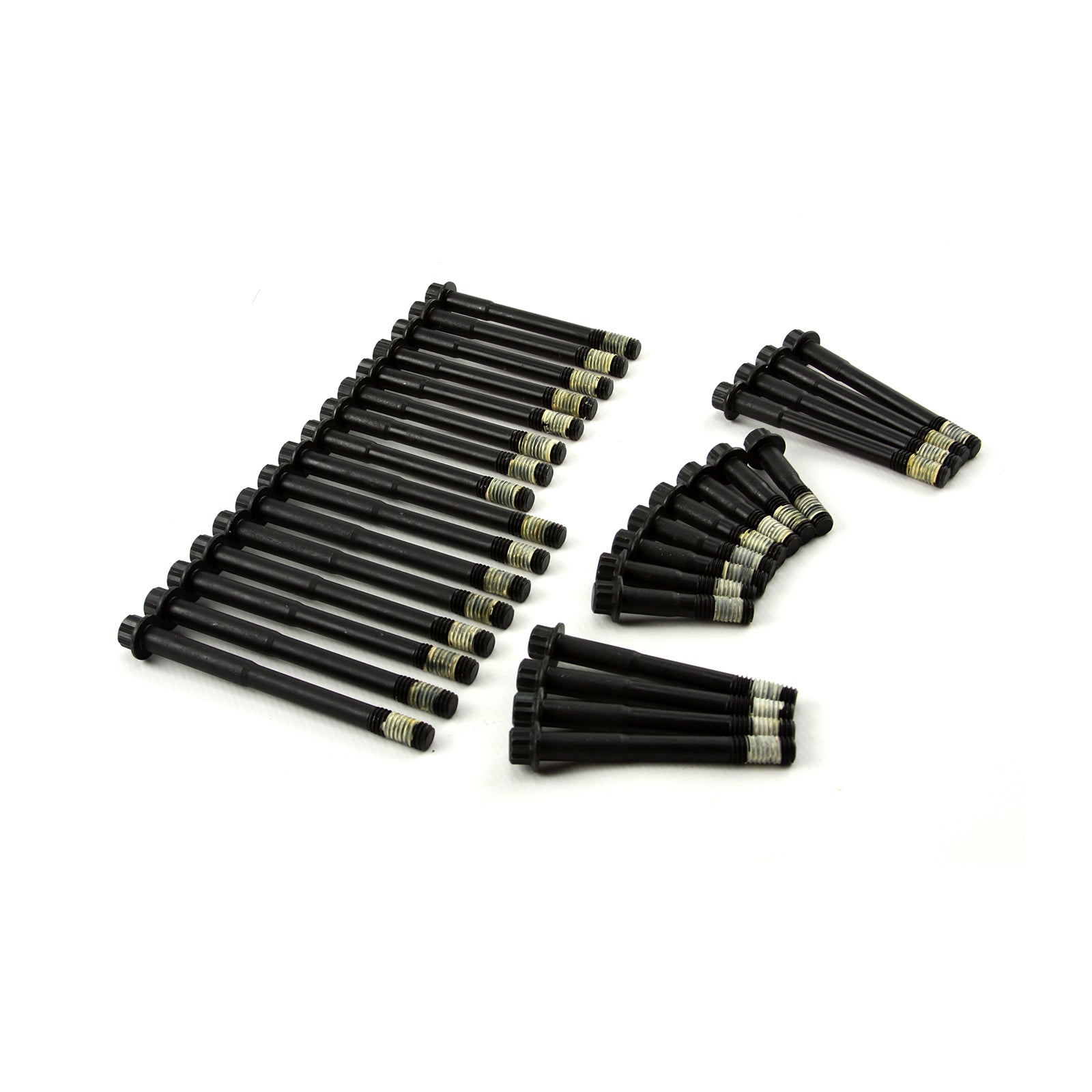 Speedmaster cylinder head fasteners are made from aircraft quality 8740 high tensile strength chromoly steel and cold-forged to ensure molecular integrity. They are heat-treated prior to thread rolling and machining and are rated at a whopping 190,000 psi. All kits come complete hardened parallel washers for an even load distribution and accurate torque readings.