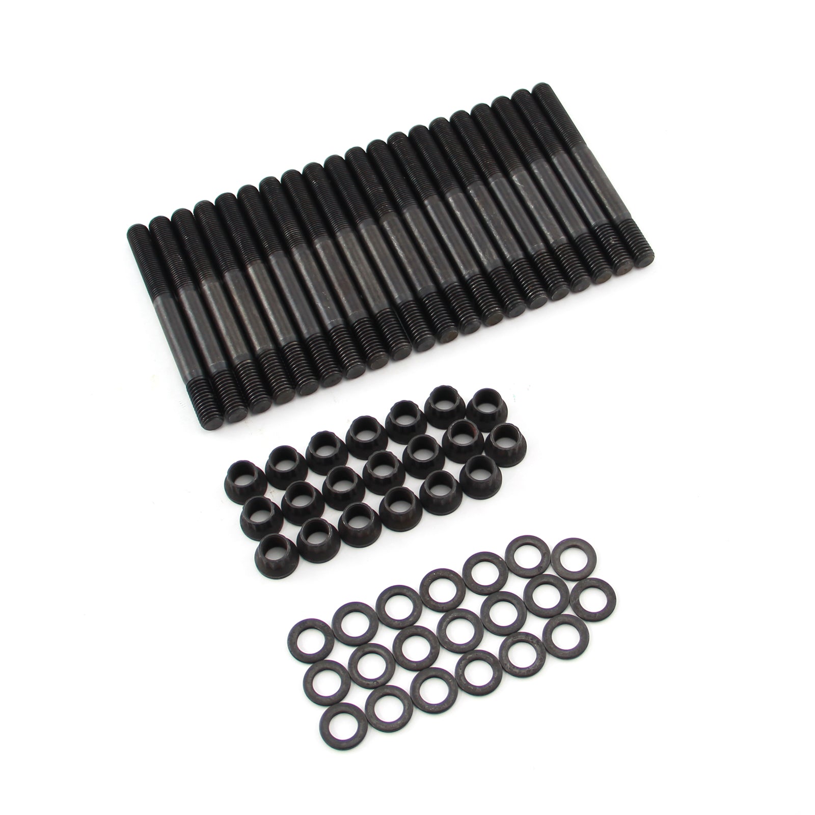 Speedmaster cylinder head fasteners are made from aircraft quality 8740 high tensile strength chromoly steel and cold-forged to ensure molecular integrity. They are heat-treated prior to thread rolling and machining and are rated at a whopping 190,000 psi. All kits come complete with 12 point nuts and hardened parallel washers for an even load distribution and accurate torque readings.