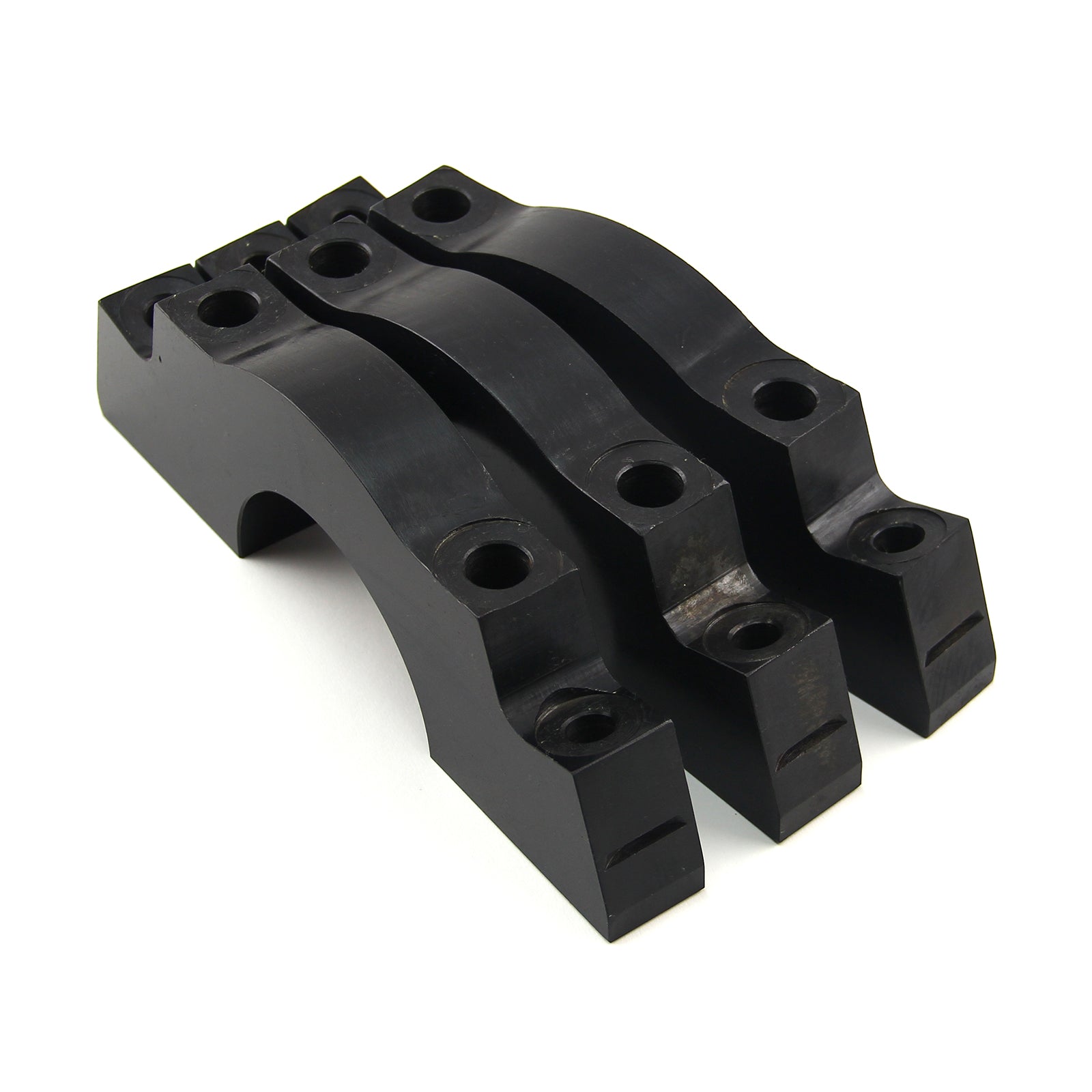 PCE billet main caps are precision CNC-machined from superior-quality 1025 billet steel. They come available as stock replacements (straight bolt) or with splayed outer bolt holes. The splayed caps feature 10 degree angled outer holes to positively reinforce and tie the block together. These extreme main cap sets consist of the center three caps. PCE billet main caps improve reliability in highly stressed engines by reducing distortion of the main bearing bores, and increasing the cap's resistance to closing up under high loads.