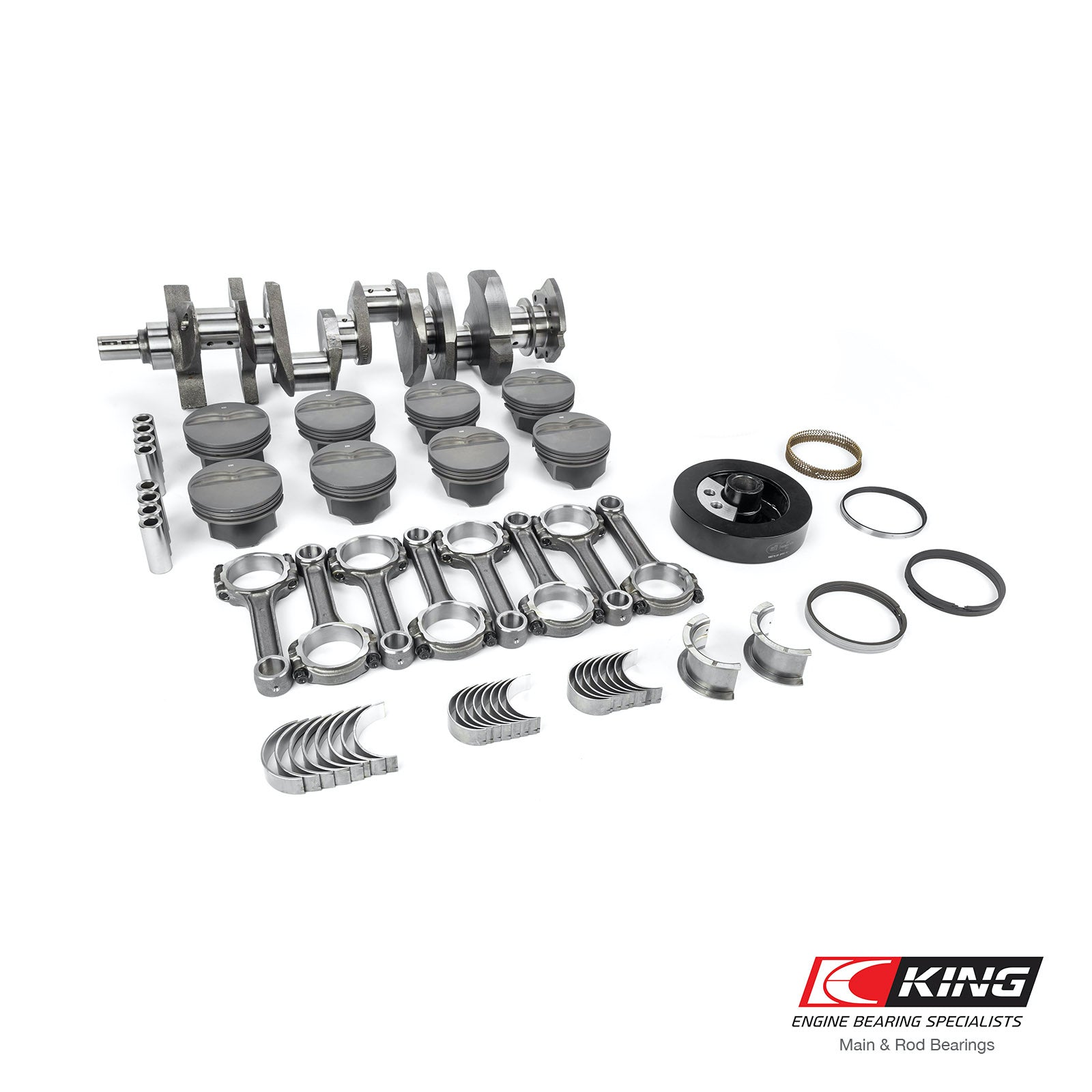 CrankshaftPCE cast crankshafts are perfect for mildly built street engines or just to replace stock crankshafts that have seen better days. These PCE crankshafts are precision-ground and micro-polished to exacting tolerances.Connecting RodsPCE I-beam connecting rods are one of the strongest connecting rods available. PCE I-beam connecting rods are perfect for mild street and performance applications up to 450 horsepower. These rods incorporate a special doweled cap for specific cap-to-rod alignment and are profiled with extra clearance for stroker applications.PistonsPCE Hypereutectic pistons with anti-friction skirt coating are manufactured from a aluminum alloy which contains 16 percent silicon for greater strength and wear resistance. By combining the hypereutectic alloy with the permanent mold process, the piston is strong, lightweight, and thermally-efficient.