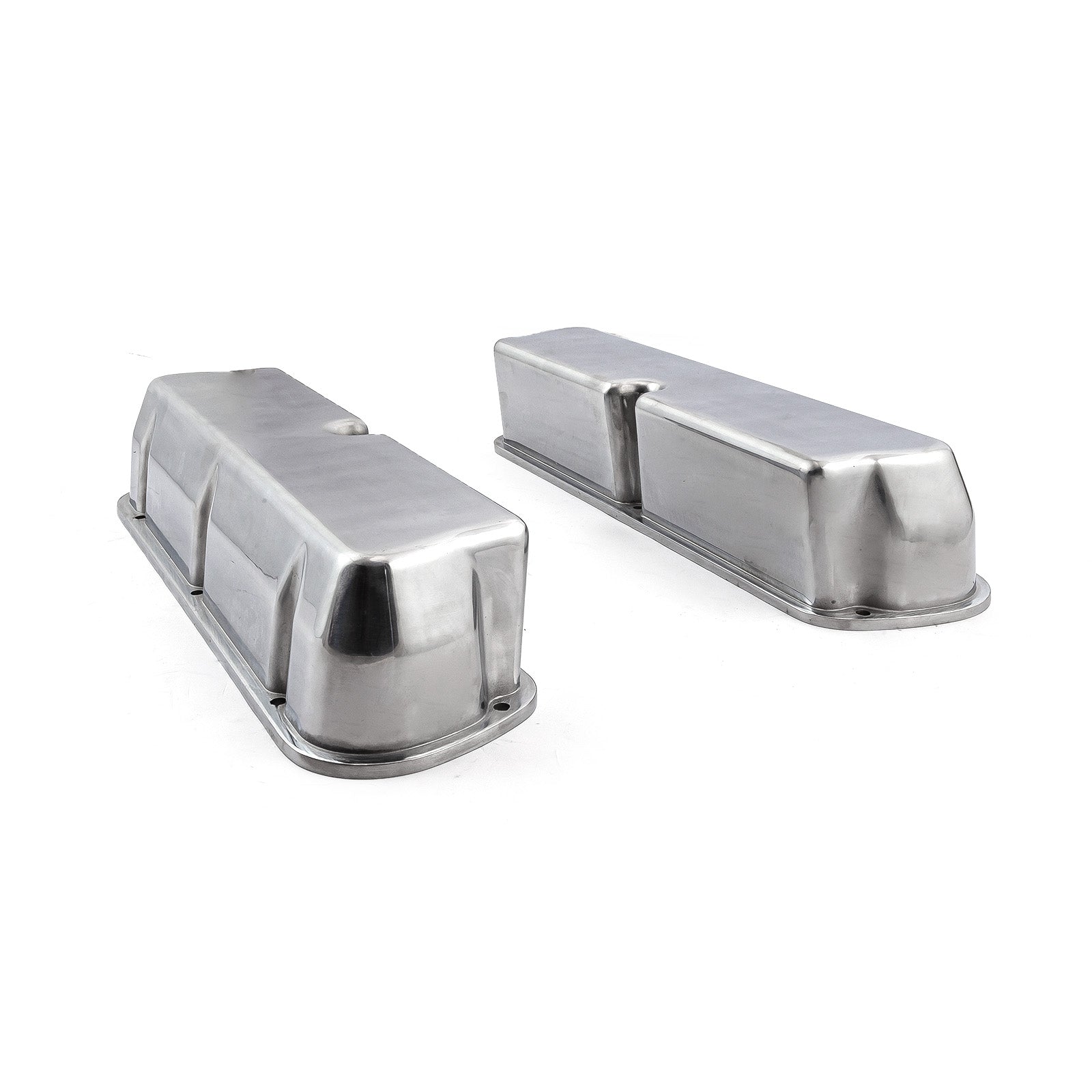 Cover your valvetrain with a set of PCE cast aluminum valve covers. Their strong die-cast aluminum design ensures an excellent gasket seal and dissipates heat better than many other covers. They come in tall and short models, and most include bolt-in baffles that can be replaced. Chose from ball-milled, plain, and even flamed designs, all with a highly polished finished. If you don't want any breather holes drilled, no problem--they are offered with breather holes or without any holes. PCE finned aluminum valve covers are the perfect fit for your engine.