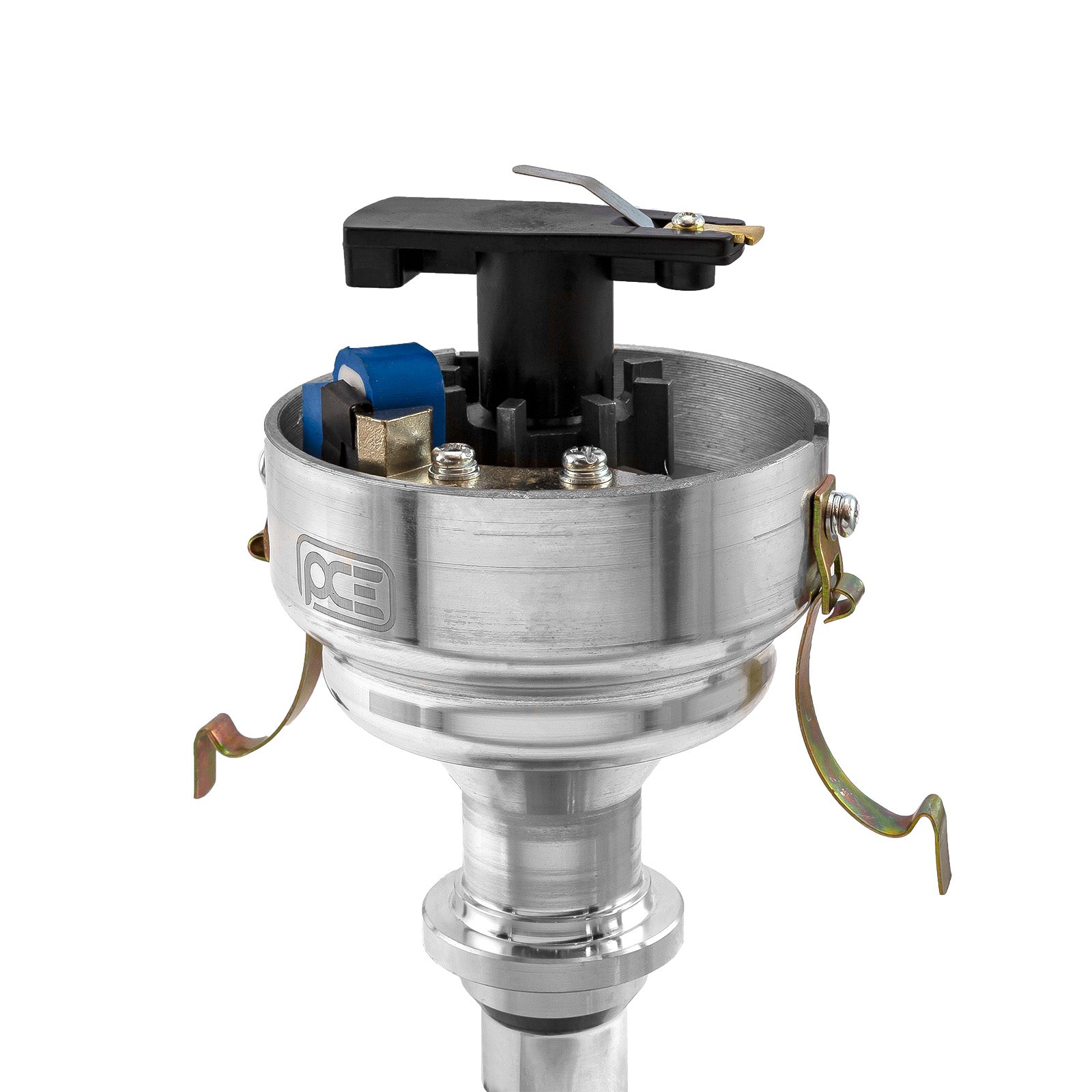 PCE 8000 Series billet distributors are designed for the enthusiast that is serious about performance but needs the small cap size due to space considerations when installed. They are precision CNC machined from billet 6061-T6 aluminum to exacting tolerances. The "spark plug" type terminals offer secure wire attachment. Under the brass terminals of the cap and rotor is an extremely accurate magnetic pickup that never requires adjustment along with an easy to adjust mechanical advance mechanism. The heavy duty 1/2" steel shaft is guided in a long sintered bushing as well as a sealed ball bearing at the top to precisely locate the reluctor. This combination yields stable timing and spark delivery at any RPM. Billet Housing: PCE Magneto Series feture a distributor housing machined from billet aluminum. PCE uses Computerised Numerical Controlled (CNC) mills and lathes to create each housing.