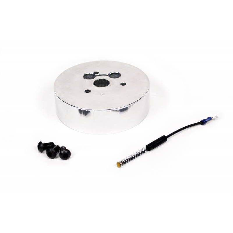 The ididit CON2R adaptor is made to adapt a CON2R 3 bolt style steering wheel to the tapered, splined top shaft of an ididit/GM steering column. Adaptor comes with mounting hardware and horn wire. Measures 1.125" tall.