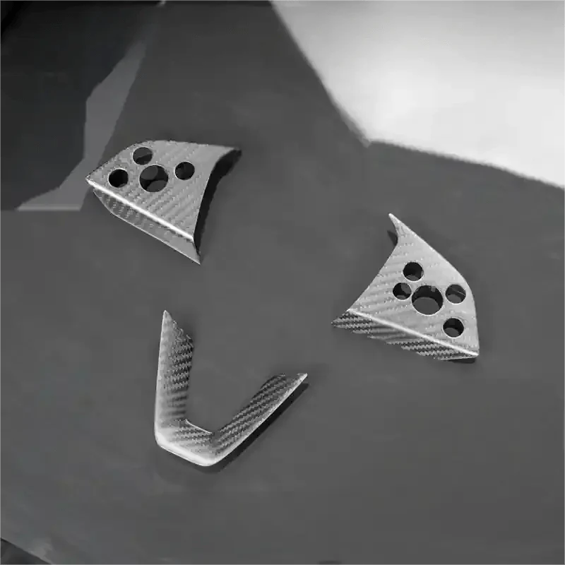 Elevate your Tesla Model 3 (2024+) or Model Y (2025+) interior with this premium Steering Wheel Bezel Overlay made from real dry carbon fiber. This high-quality 3-piece overlay set adds a sleek, modern touch to your vehicle, designed to perfectly fit the steering wheel bezels for these latest Tesla models.