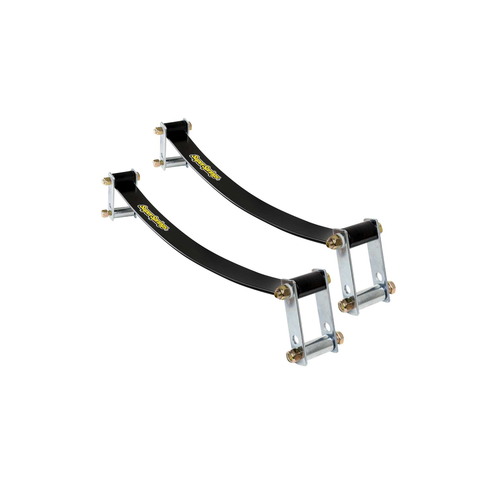 SuperSprings are a unique and patented self-adjusting suspension stabilizing system for vehicles with rear leaf springs, designed to level loads and reduce body roll. SuperSprings provide users extra load support and reduce body roll without compromising ride quality. They are manufactured using a variety of different sized springs to support multiple applications. All SuperSprings are manufactured in the U.S.A. from SAE5160H high grade, shot peened steel.