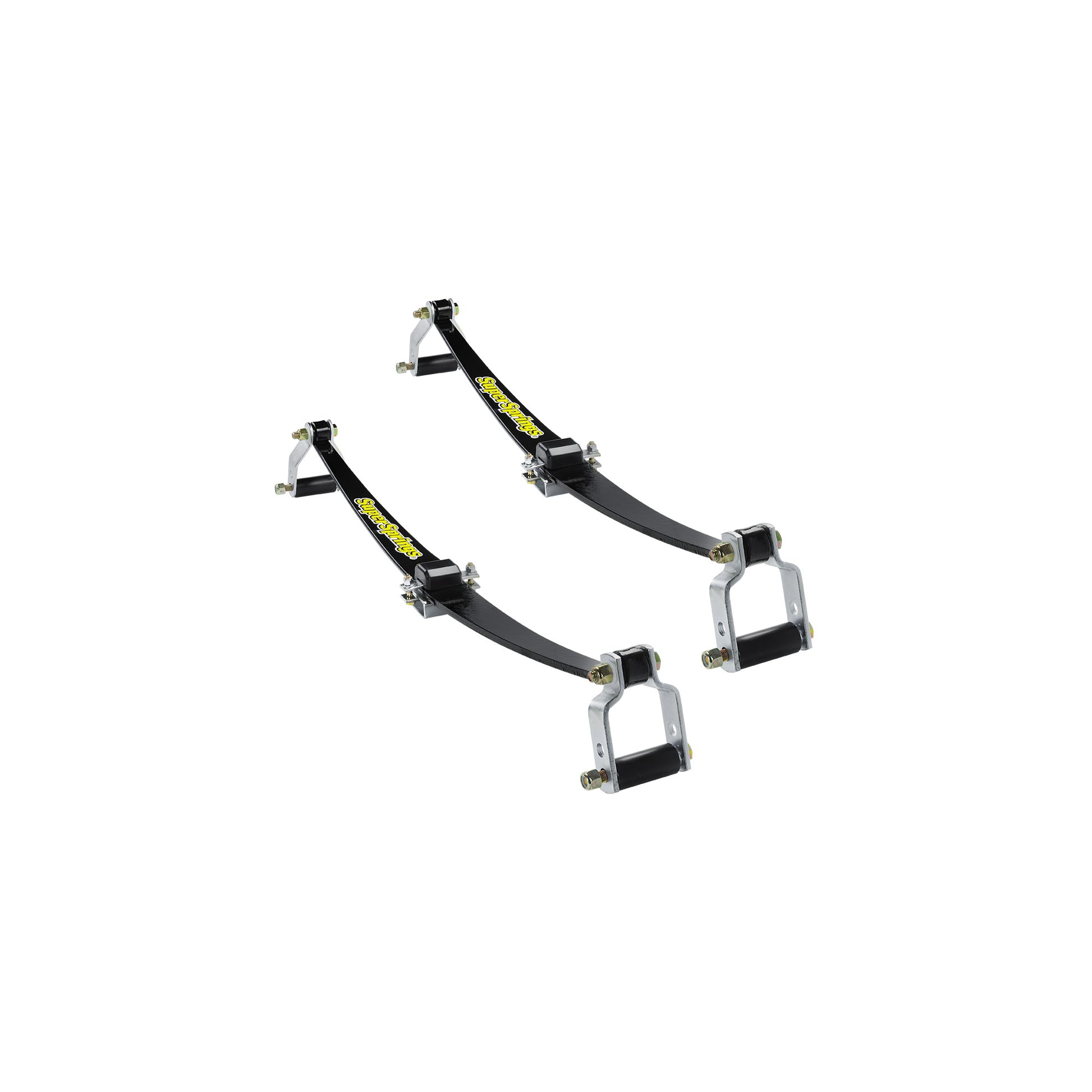 SuperSprings are a unique and patented self-adjusting suspension stabilizing system for vehicles with rear leaf springs, designed to level loads and reduce body roll. SuperSprings provide users extra load support and reduce body roll without compromising ride quality. They are manufactured using a variety of different sized springs to support multiple applications. All SuperSprings are manufactured in the U.S.A. from SAE5160H high grade, shot peened steel.