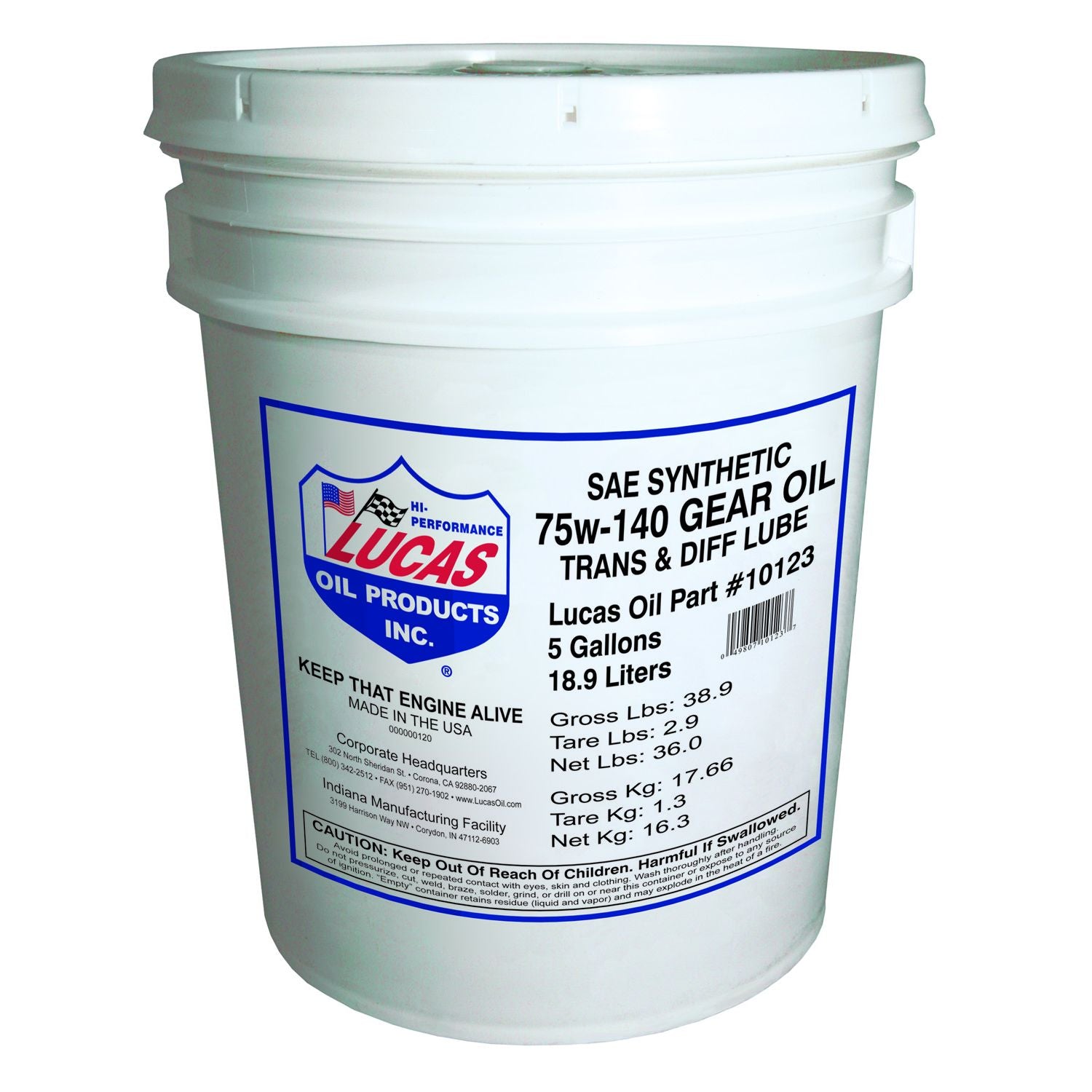 Lucas Synthetic SAE 75W-140 Trans & Diff Lube is a pure-synthetic, non-foaming, super-slick, long-lasting lubricant designed especially for heavy duty or high performance applications where other gear lubricants just aren?t good enough. Contains a special additive package that cushions gears and resists ?squeezing out? under extreme pressure. We have improved the high speed shock load and significantly improved anti-wear performance, which provides the ultimate protection to the gear components. Especially designed to stand up to high temperatures without losing its lubricity. Excellent to quiet whines in noisy differentials. EXCEEDS ALL GL CLASSIFICATIONS API MT-1, API GL-5, MIL-PRF-2105E, MACK GO-G, PG-2 Limited Slip