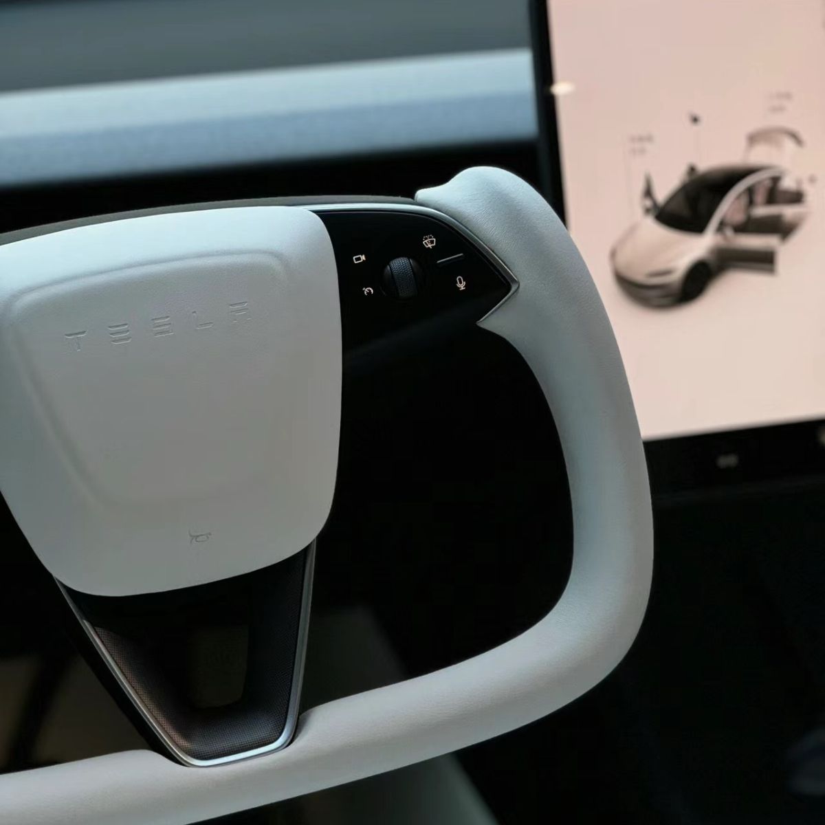 TESERY Model 3 Highland & Model Y Juniper Yoke Plaid Steering Wheel 【White Leather】