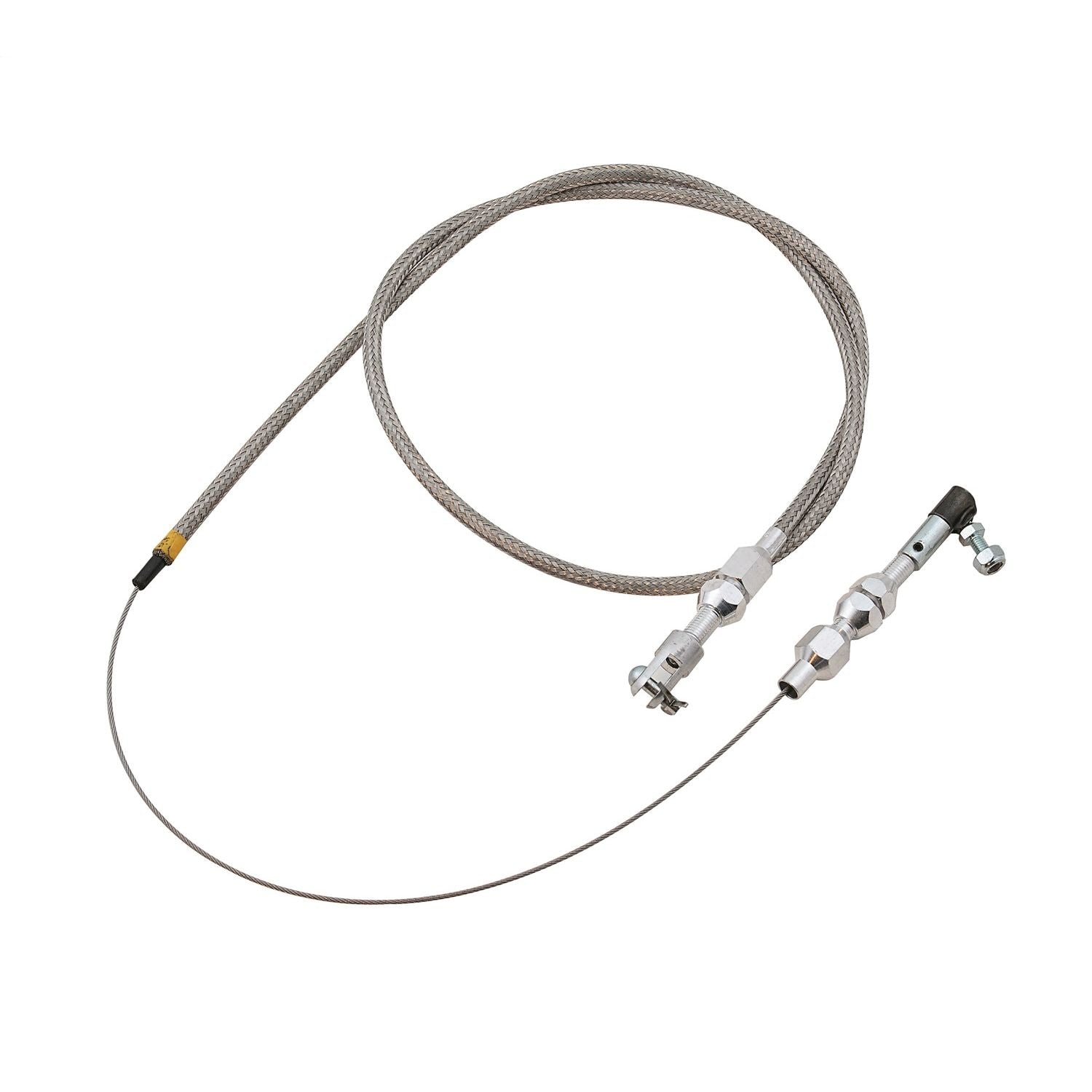 Ideal for street rod applications, this 17 inch throttle cable not only looks great but compliments the engine compartment of any vehicle. Made from highly polished stainless steel, featuring a tough, armor wrapped core, this cable contains up to 6 inches of adjustable travel. A quick disconnect fitting makes carburetor linkage easy to remove while a locking brass bushing aids adjustment for the gas pedal. Designed for firewall mounting location.