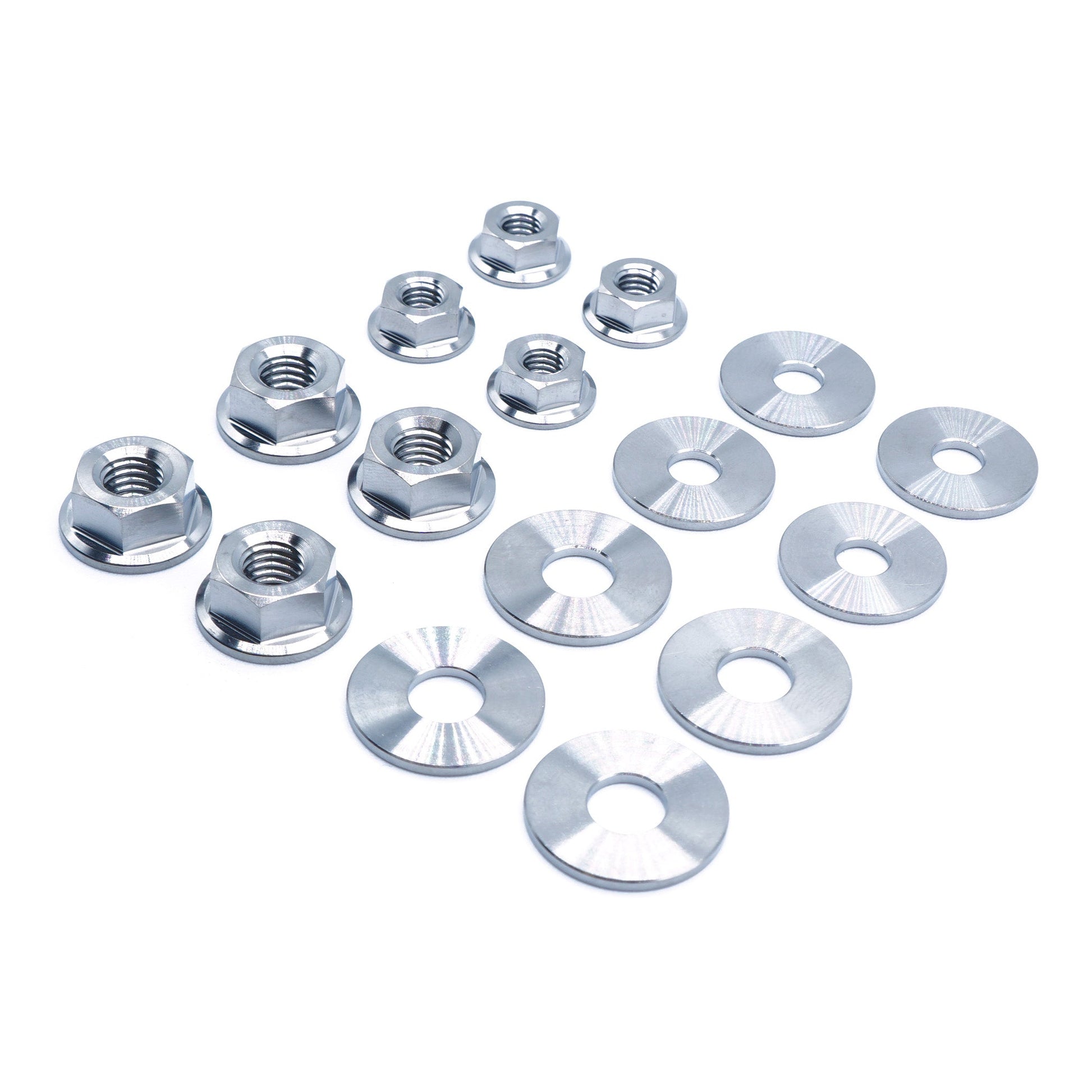 Our MK8 GTI hood kit includes 8 titanium nut and 8 titanium washers. The kit replaces the hardware circled in the diagram above. The GTI hood kit comes with clear instructions that walk you through where to place each hardware piece, ensuring a fast and effortless setup.