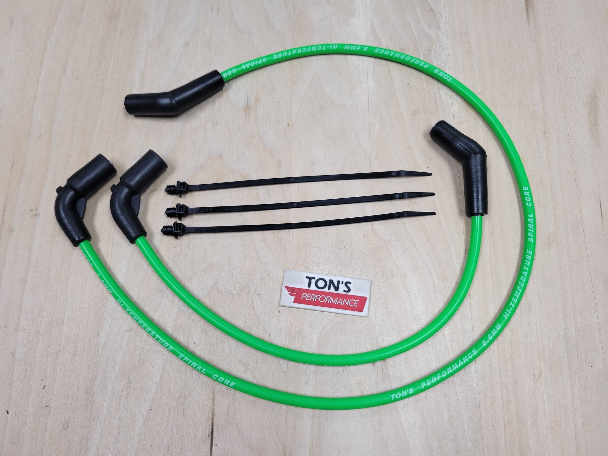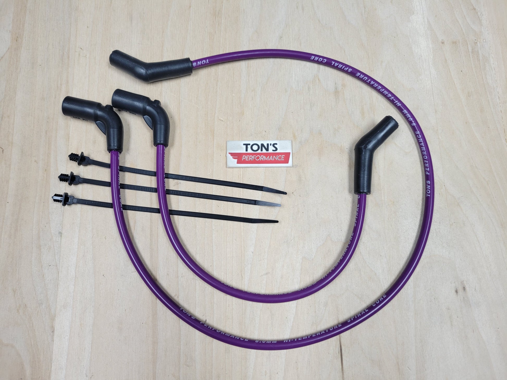 Ton's Performance wires are built with a spiral wound alloy conductor with a high dielectric insulator, fiberglass braid, followed by two layers of silicone resulting in 8mm thick silicone jacket to protect against heat and tears. Ton's is one of very few companies that offers custom wires for many different applications in the aftermarket motorsports world. If you need a set of ready to install or universal wires for a custom built project, send us a message for more details.