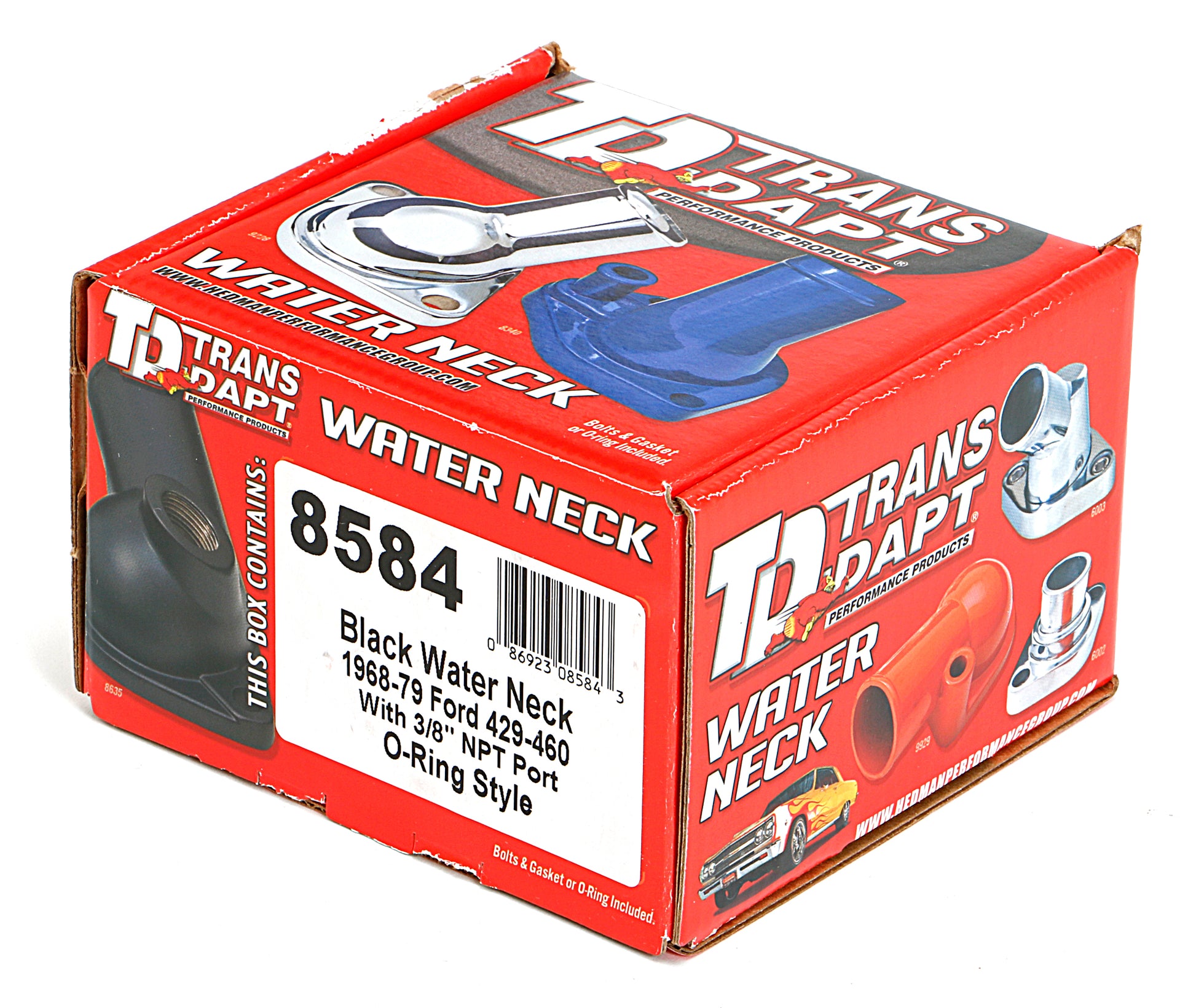 Trans-Dapt Performance Asphalt Black Powder-Coated Water Neck (Thermostat Housing); Ford 429-460 (3/8 In. Npt Port) 8584