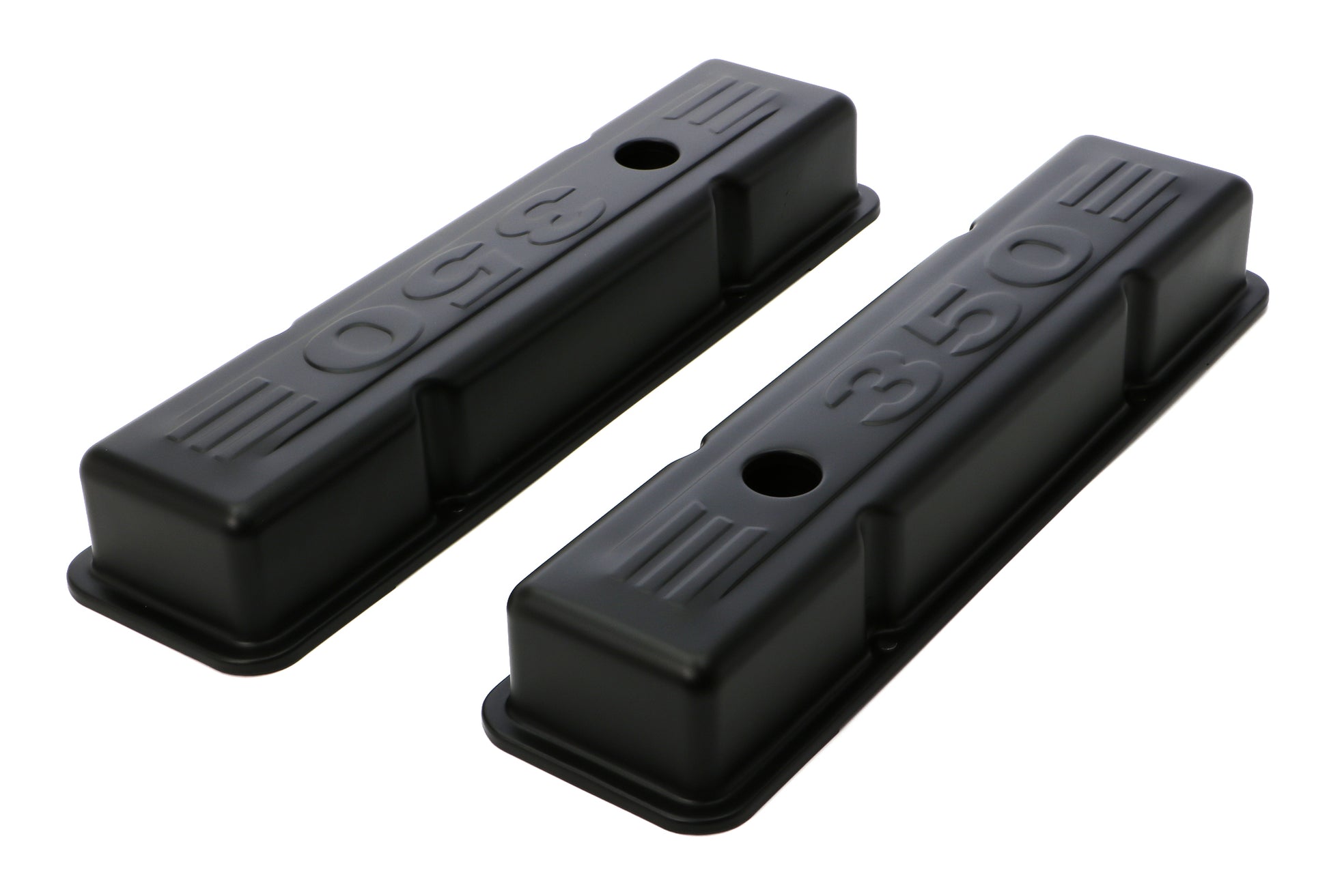 Trans-Dapt Performance Chevy 350 Logo Short Asphalt Black Powder Coated Valve Covers 8678