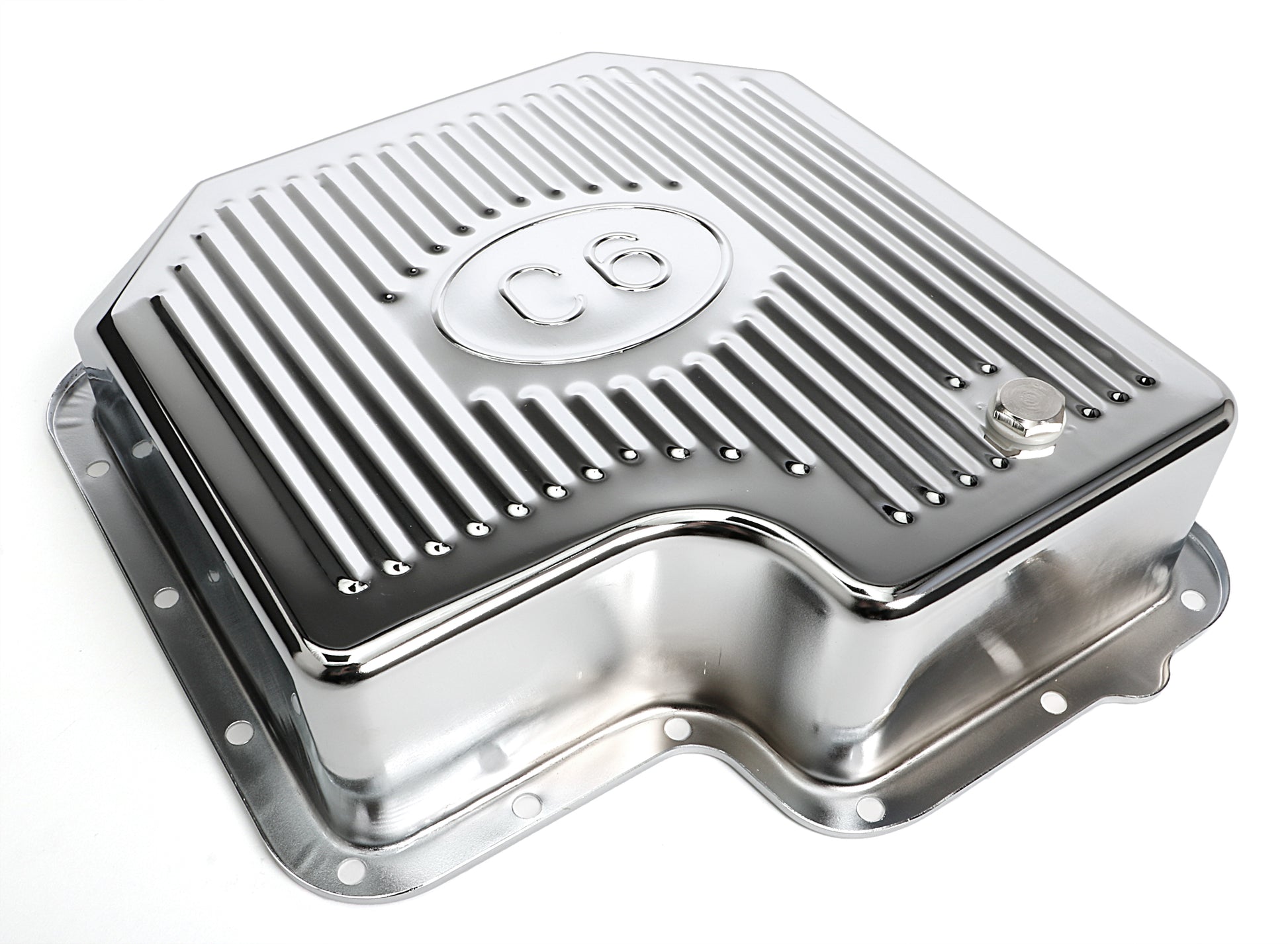 Trans-Dapt Performance Chrome Steel Extra Capacity Transmission Pan; Finned; Ford C6 9109