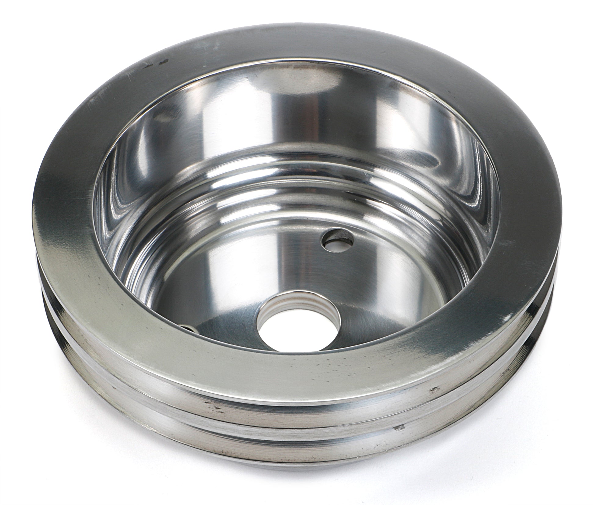 Trans-Dapt Performance Crankshaft Pulley; 2 Groove; 1969-1985 Chevrolet 283-350; Long Water Pump- Polished Aluminum 6057