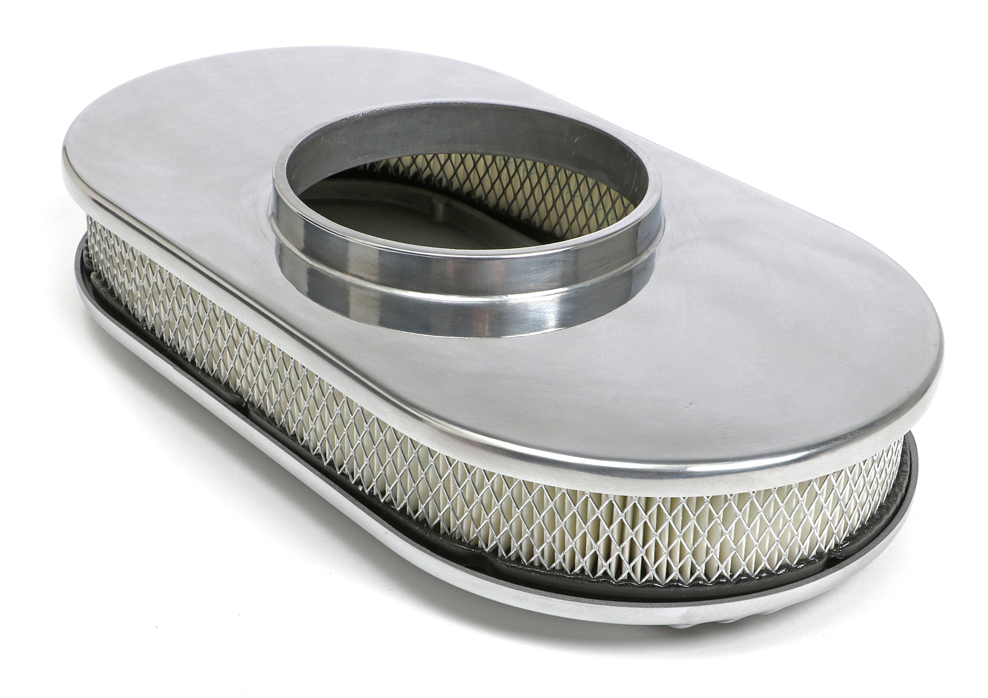 - Product Details: Polished Aluminum Oval Air Cleaner set with two sets of fins across the top.