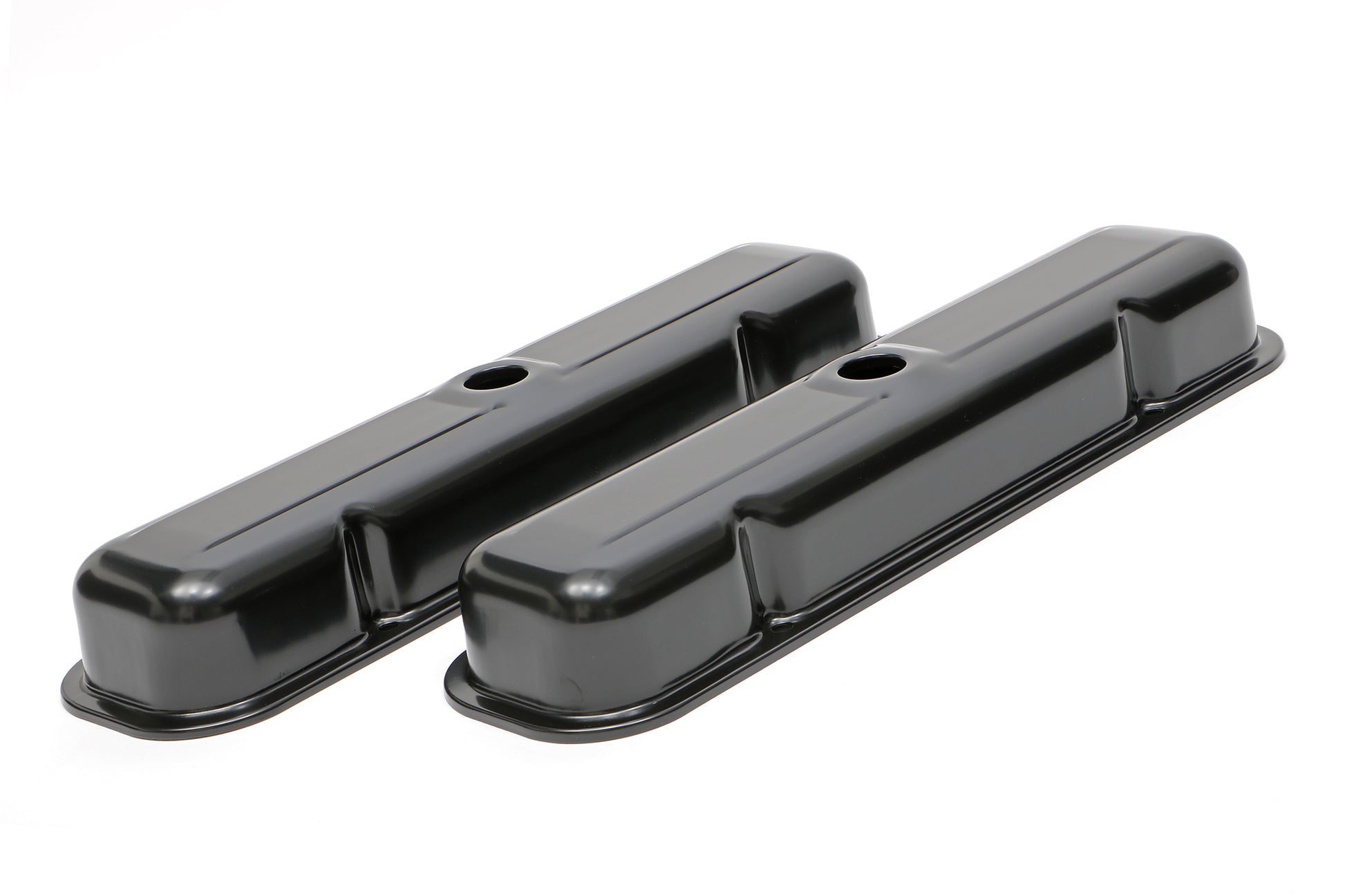 Trans-Dapt Performance O.E.M. Reproduction Design Valve Covers; Short; 1959-1979 Pontiac 326-455- Black Steel 7442
