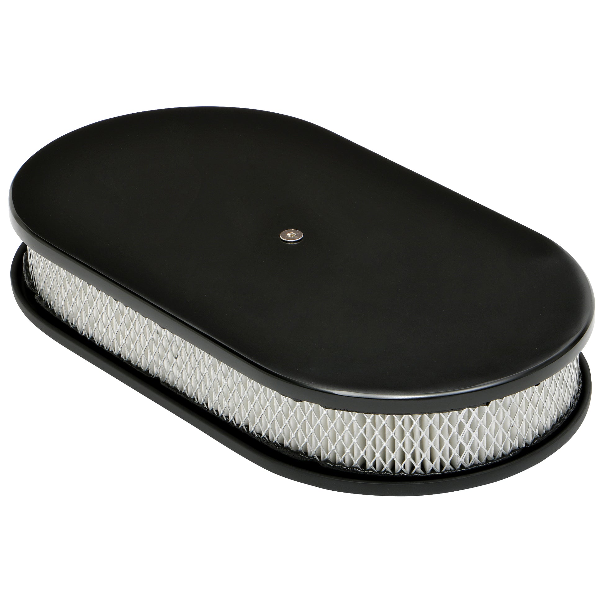 Trans-Dapt Performance Oval Air Cleaner Set; Smooth-Top; 8-3/8 In. Width 15 In. Length; Raised Base- Black Aluminum 7463