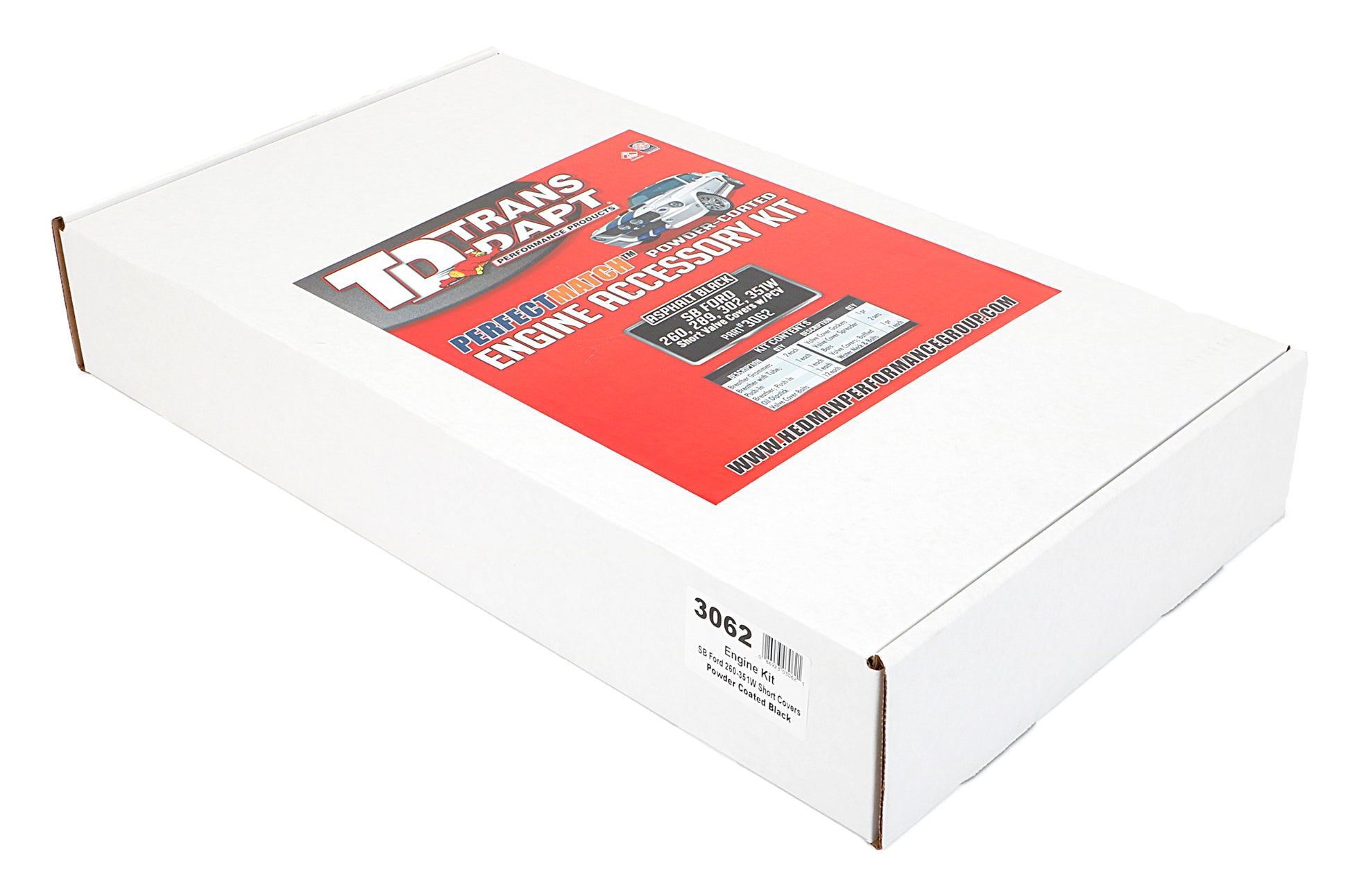 Trans-Dapt Performance Powder-Coated Engine Kit; 1962-85 Sb Ford 260-351W (Windsor Block); Short Valve Covers- Asphalt Black 3062