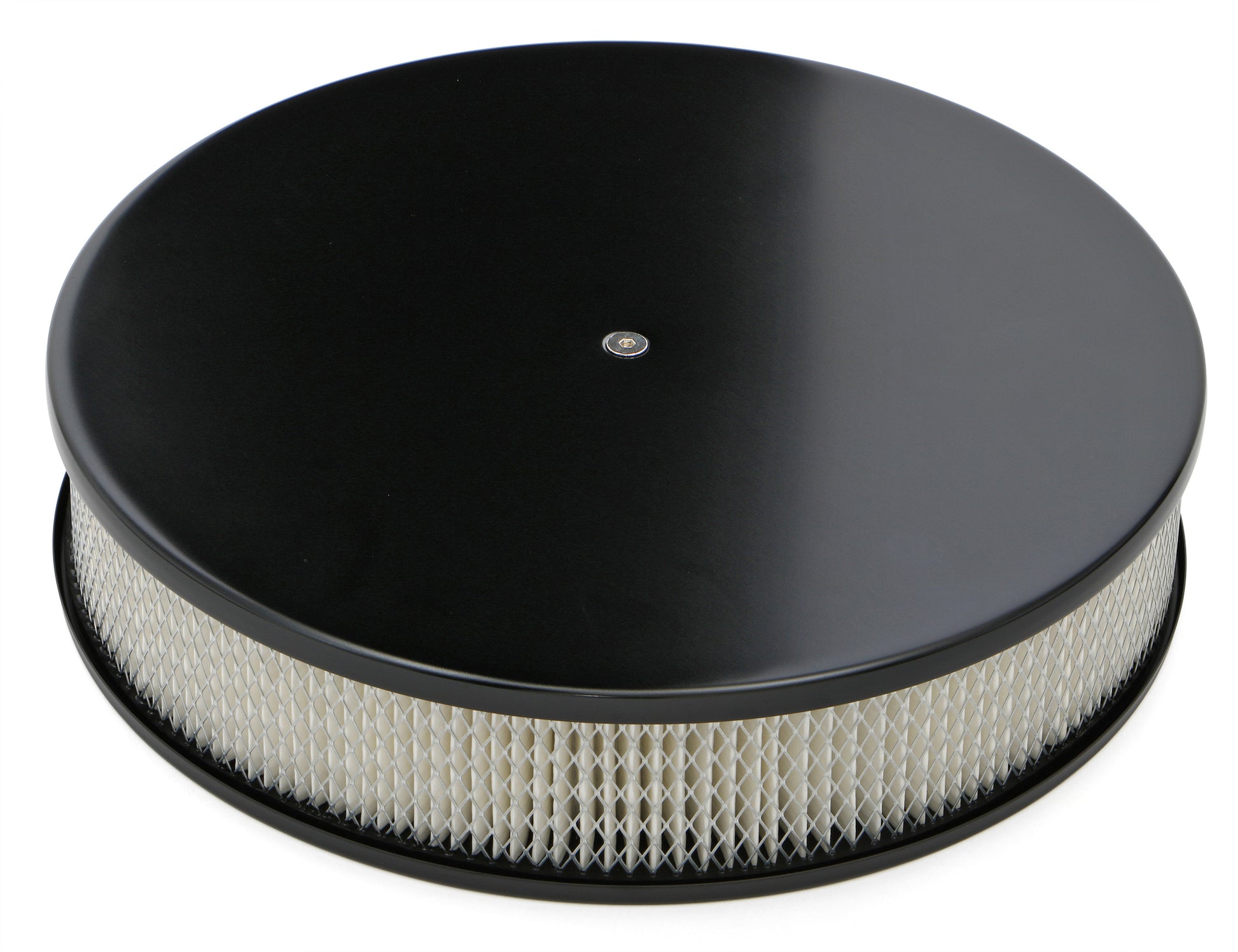 Trans-Dapt Performance Round Air Cleaner Set; Smooth Aluminum Top; 14 In. Diameter 3 In. Tall; Recessed Steel Base- Black Aluminum/Steel 7471