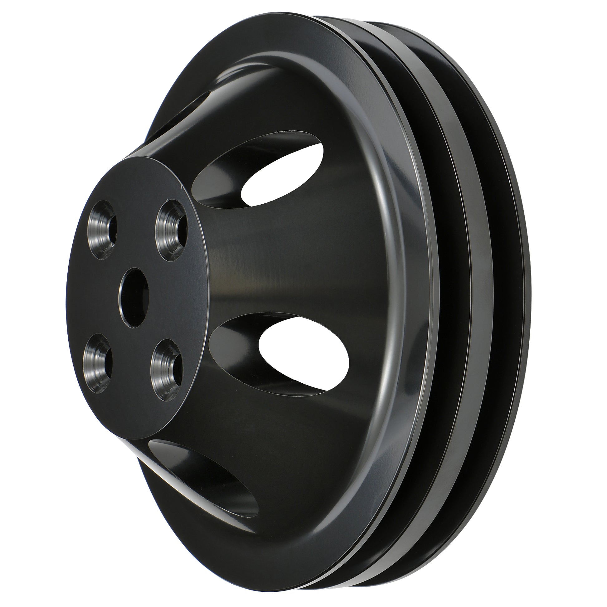 Trans-Dapt Performance Water Pump Pulley; 2 Groove; 1969-1985 Chevrolet 283-350; Long Water Pump- Black Aluminum 7145