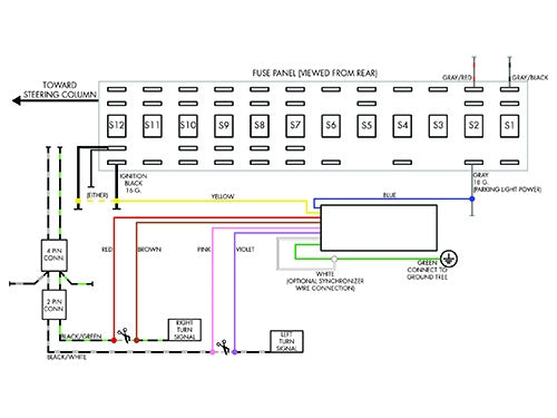 Note: our kit utilizes the bright turn signal filament, not the dim parking light filament, which is not sufficient for DRL service.